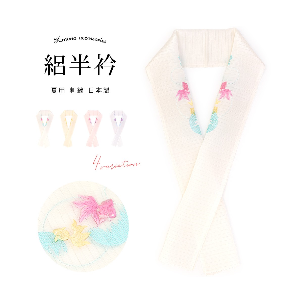 半襟 刺繍 半衿 はんえり 夏 絽 金魚 水玉 白 薄黄色 ピンク 薄紫 綿麻 おしゃれ 和装小物 日本製