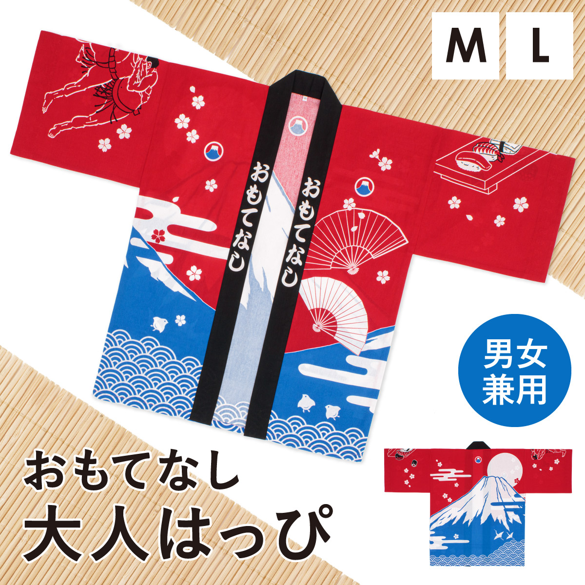 はっぴ 大人 法被 衣装 女性 男性 祭り イベント 夏 レディース メンズ 赤 青 富士 桜 寿司 綿