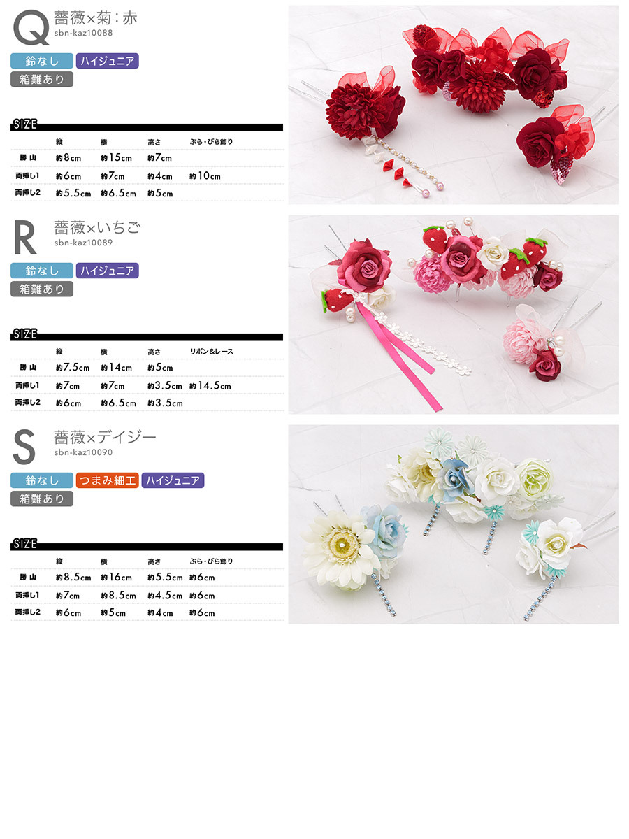 ※外箱に傷や損傷がある場合がございますが、髪飾り本体には影響はなく、綺麗にお使いいただける商品となっております。予めご了承ください。