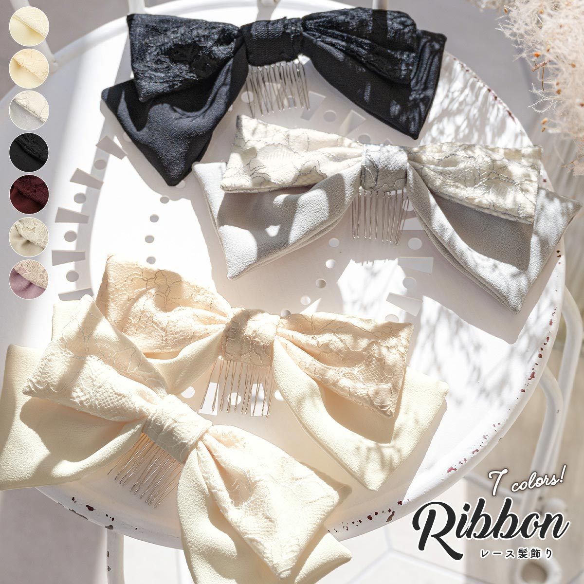 卒業式 髪飾り 袴 リボン 成人式 振袖 レース クリーム ベージュ グレー ブラック 黒 コーム式 日本製 髪留め