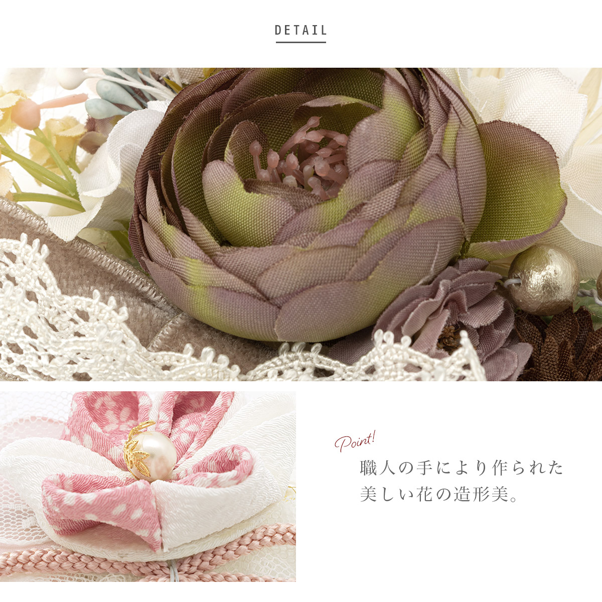 七五三 髪飾り 三歳 七歳 3歳 7歳 おしゃれ つまみ細工 レース 花 くすみカラー