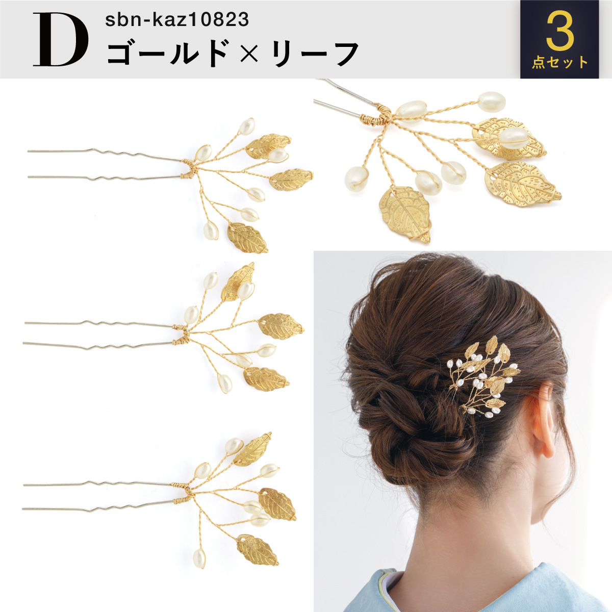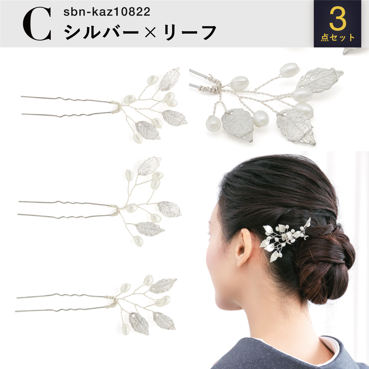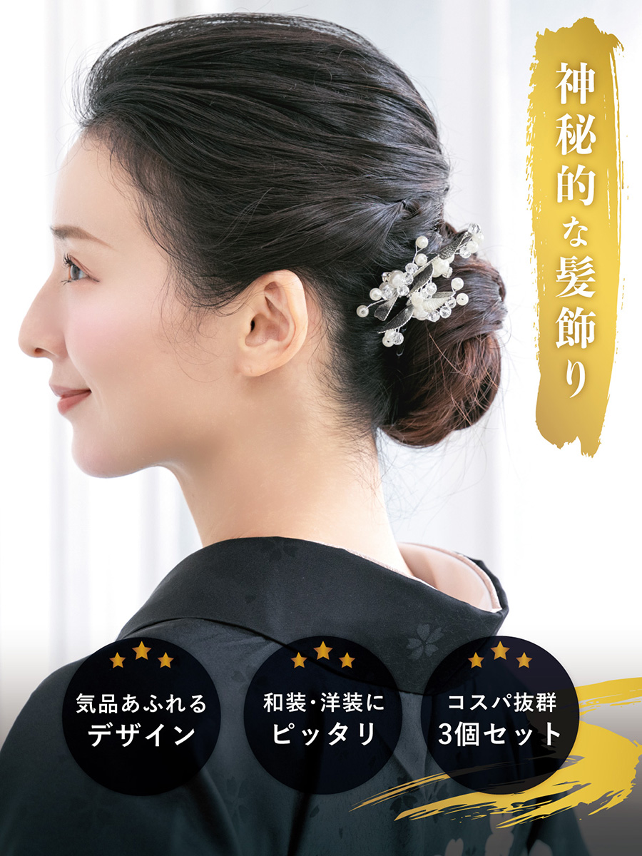 髪飾り 3点セット 成人式 卒業式 リーフ 銀 金 フェイクパール ヘアアクセサリー 小さめ ヘアアクセ Uピン 和洋兼用 結婚式 髪留め 送料無料