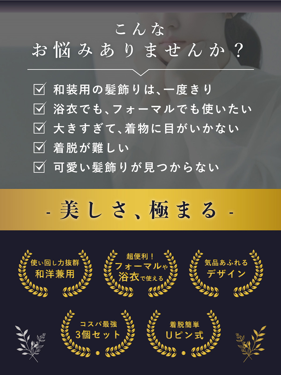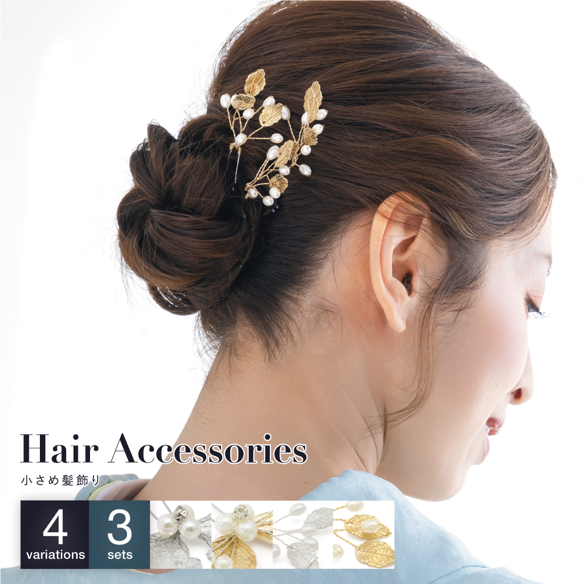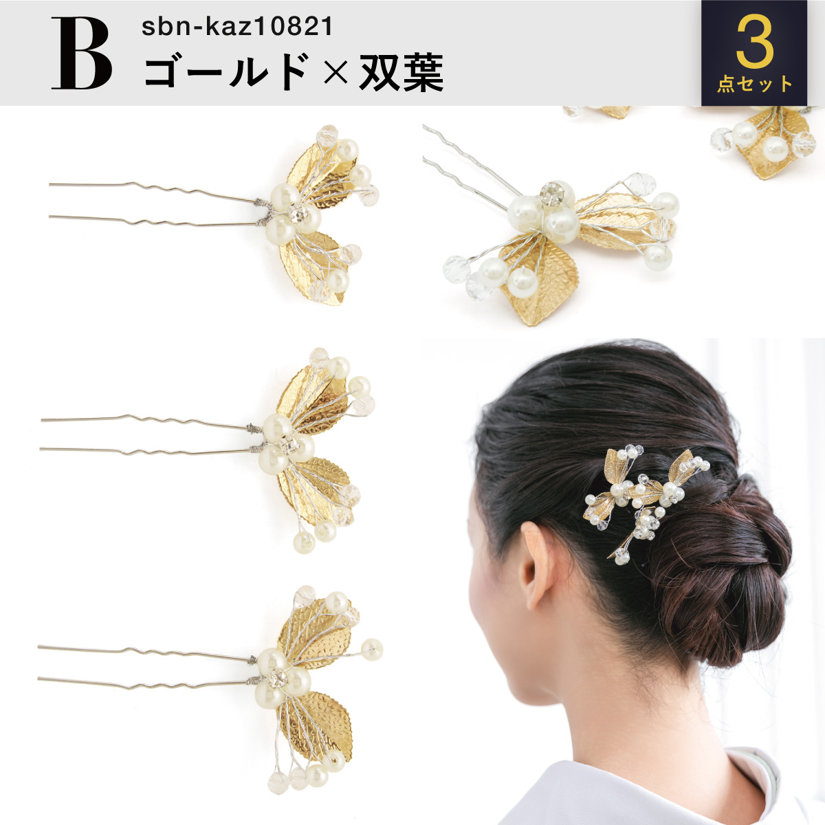 髪飾り 3点セット 成人式 卒業式 リーフ 銀 金 フェイクパール ヘアアクセサリー 小さめ ヘアアクセ Uピン 和洋兼用 結婚式 髪留め 送料無料