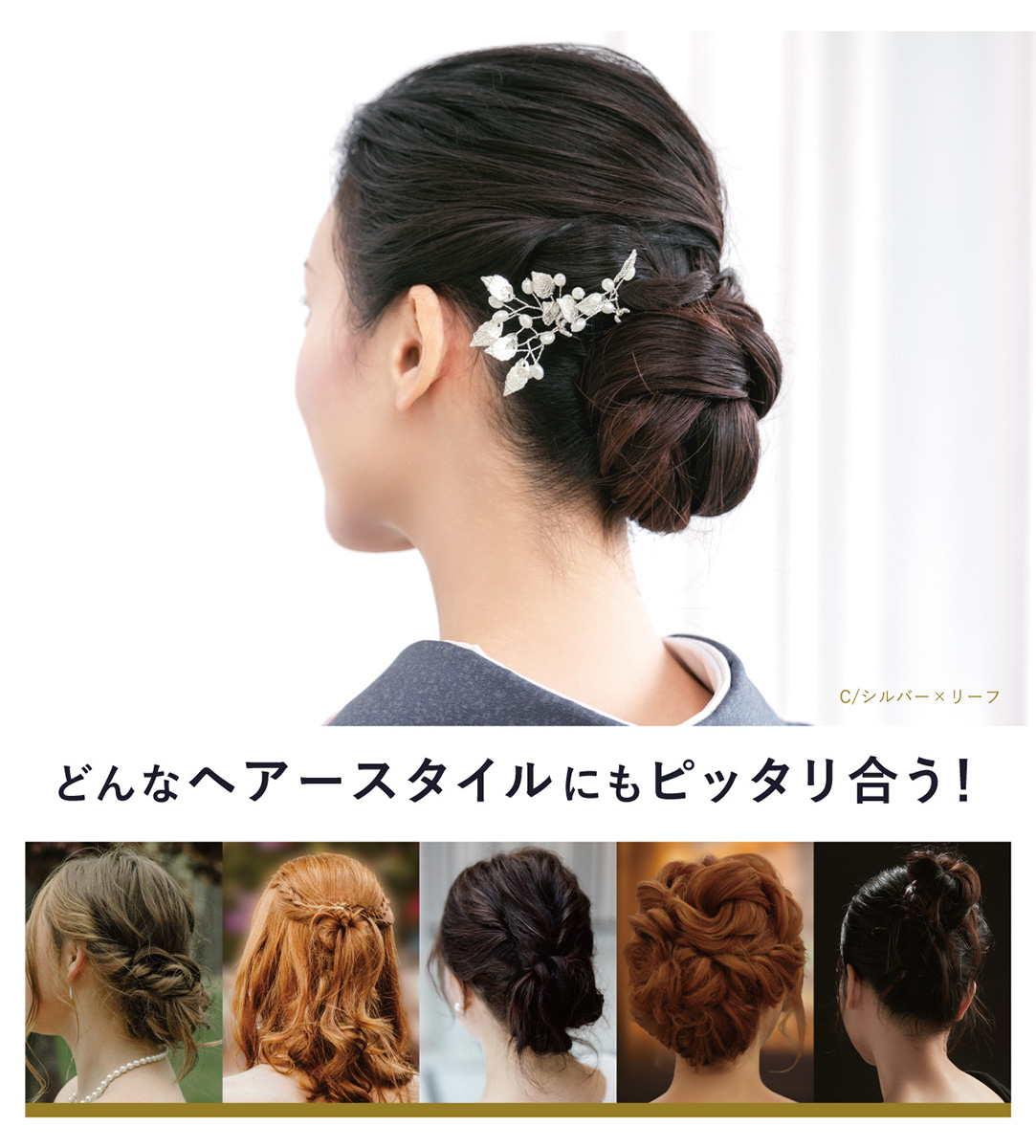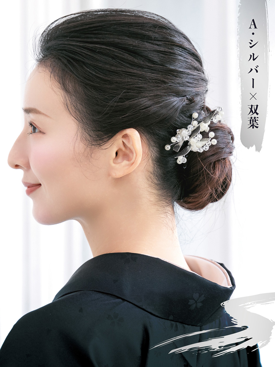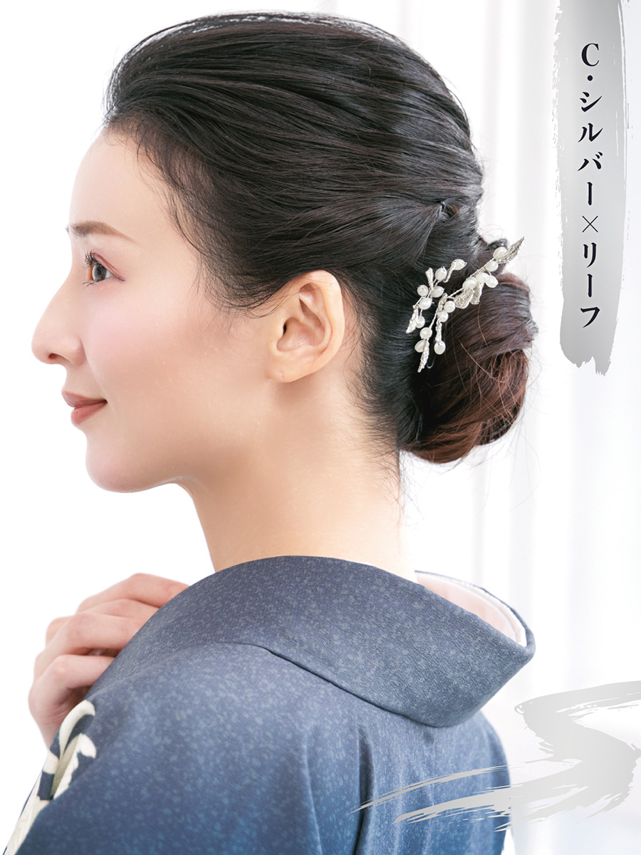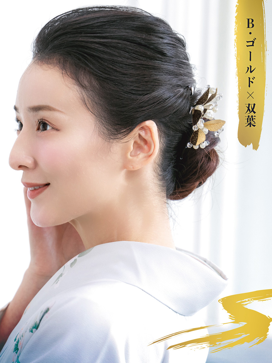 成人式におすすめ。艶やかな質感のリーフ3点セット