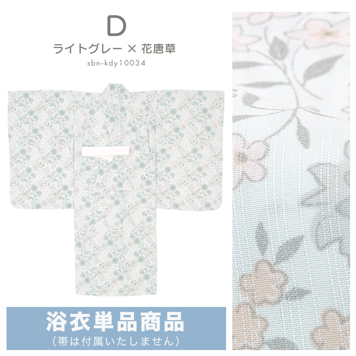 浴衣 子供 女の子 単品 キッズ 新作 SOUBIENオリジナル 吸水速乾 CoolPass 子ども服 白 水色 ピンク グレー 薔薇 ポピー 唐草 花柄