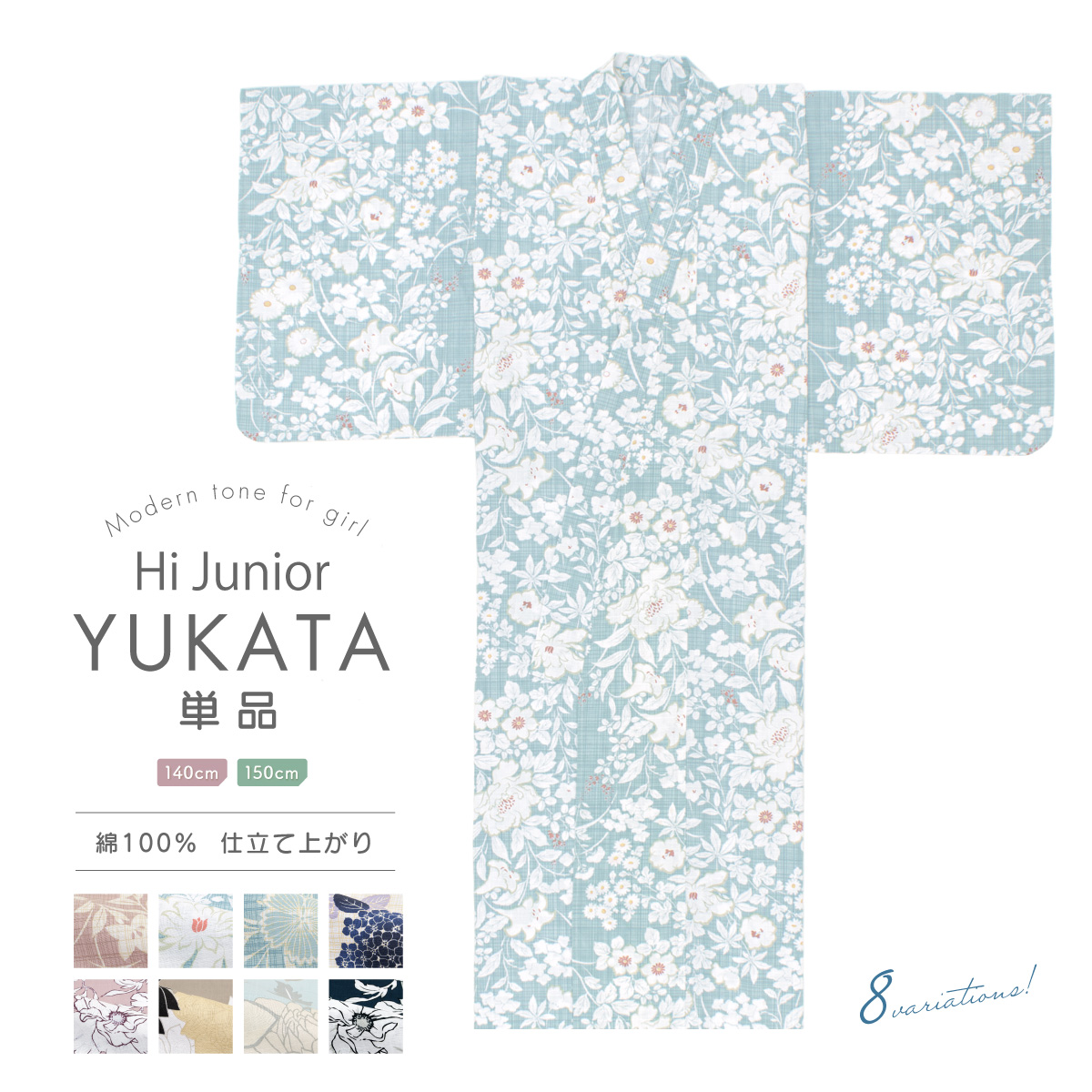浴衣 子供 女の子 単品 キッズ ピンク アイボリー パープル グレー ネイビー 花 フラワー 紫陽花 睡蓮 ポピー 綿 変わり織り 花柄