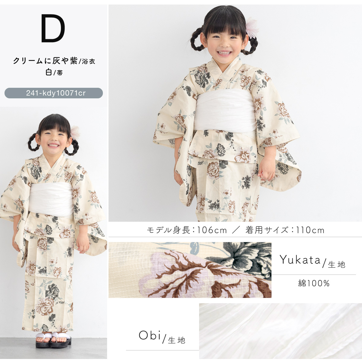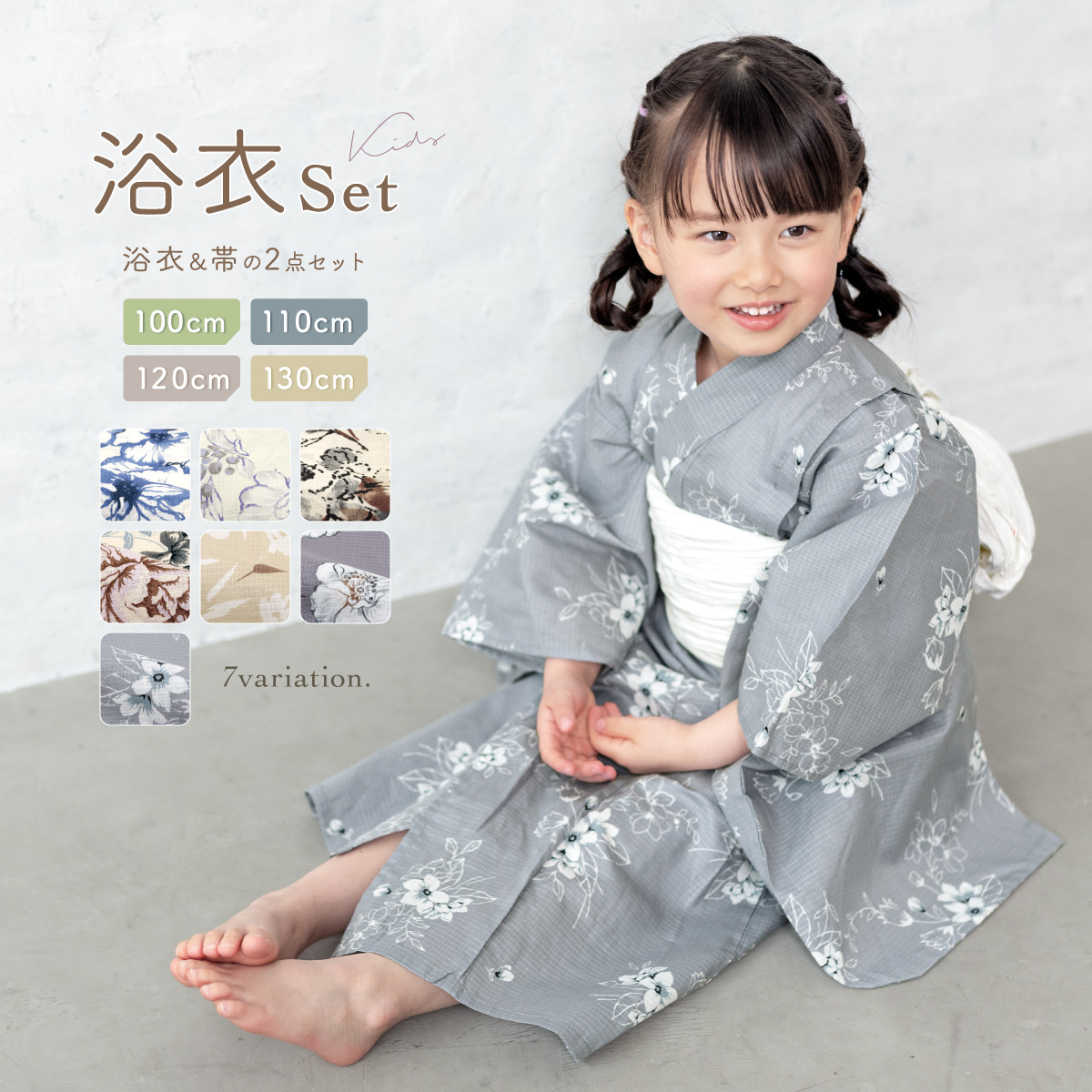 浴衣 子供 女の子 セット キッズ 兵児帯 浴衣セット 2点セット 綿 子ども服 モダン 白 青 紫 花柄 100 110 120 130