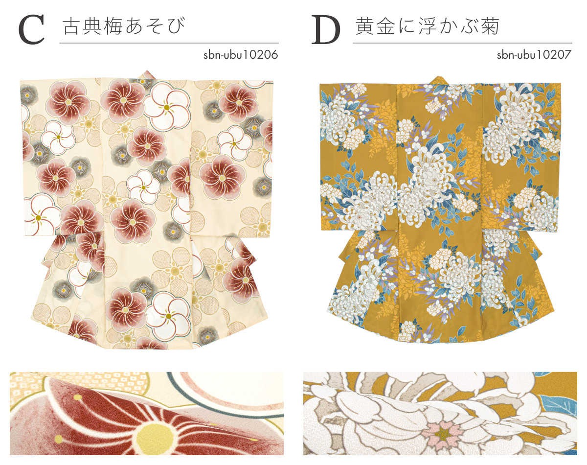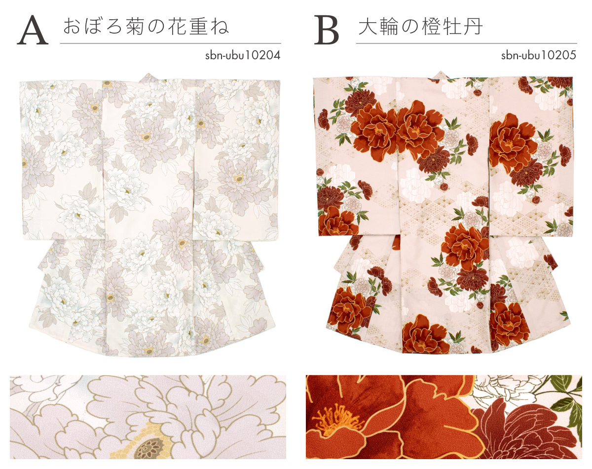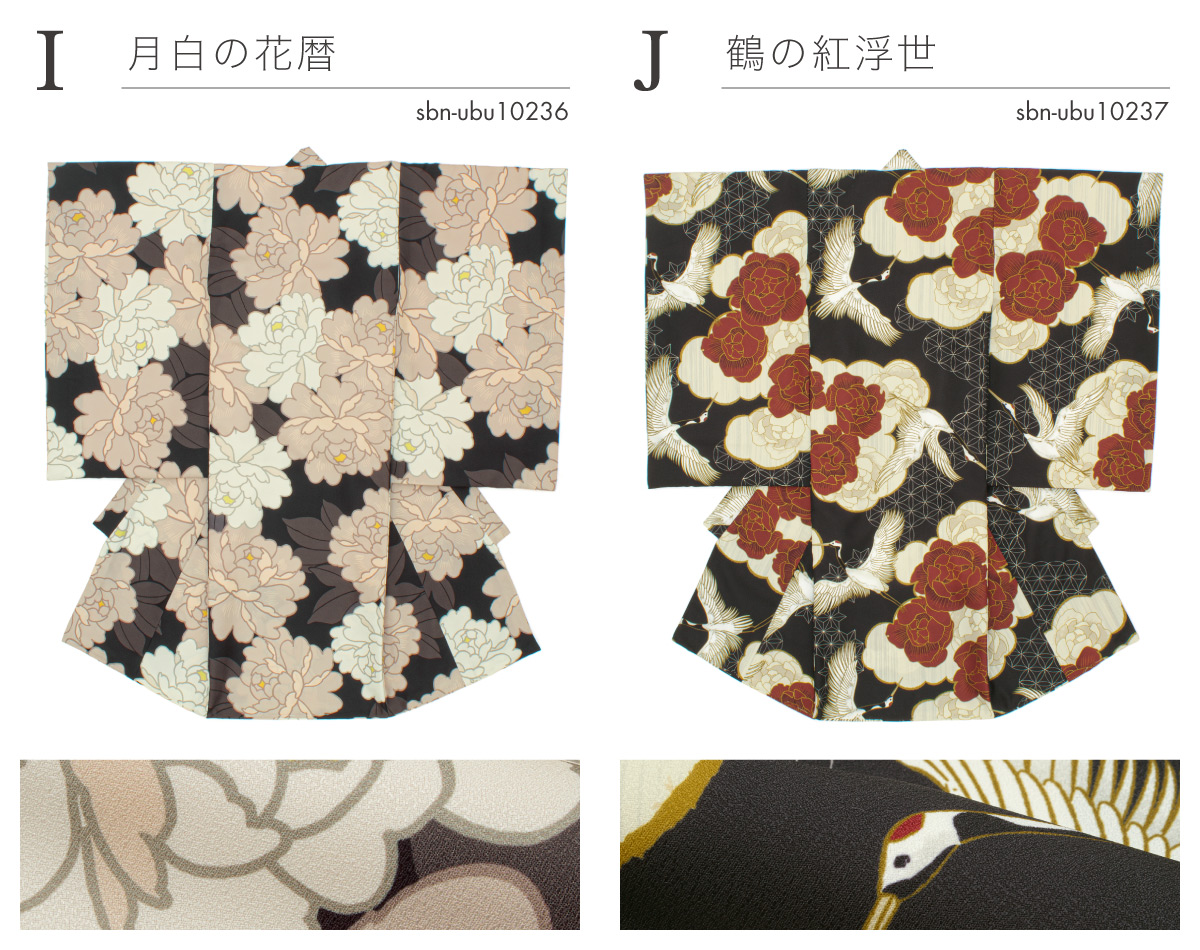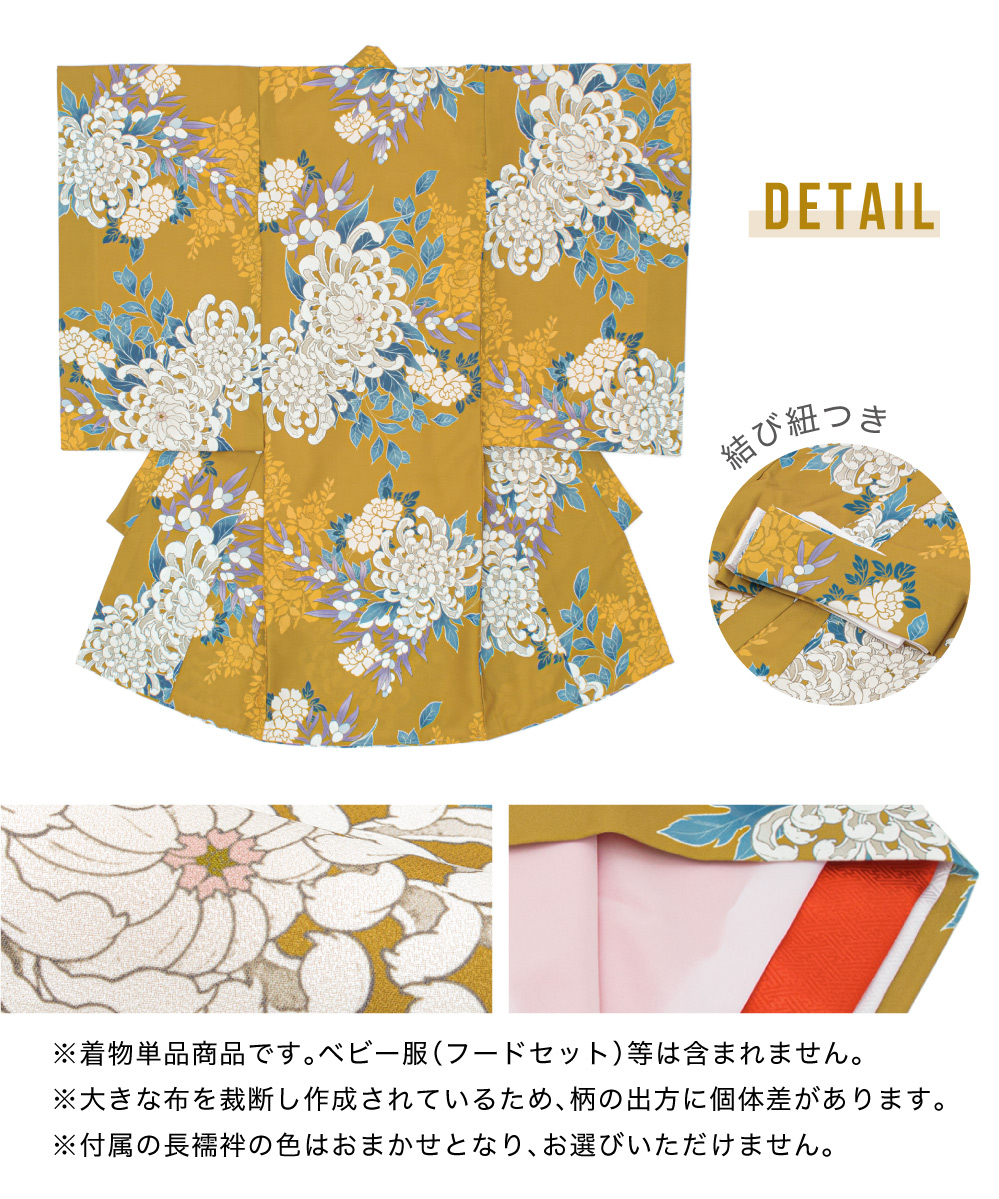※着物の柄部分は大きな生地を使用して作られておりますので、色や柄の出方、模様の配置等が画像と異なる場合がございます。