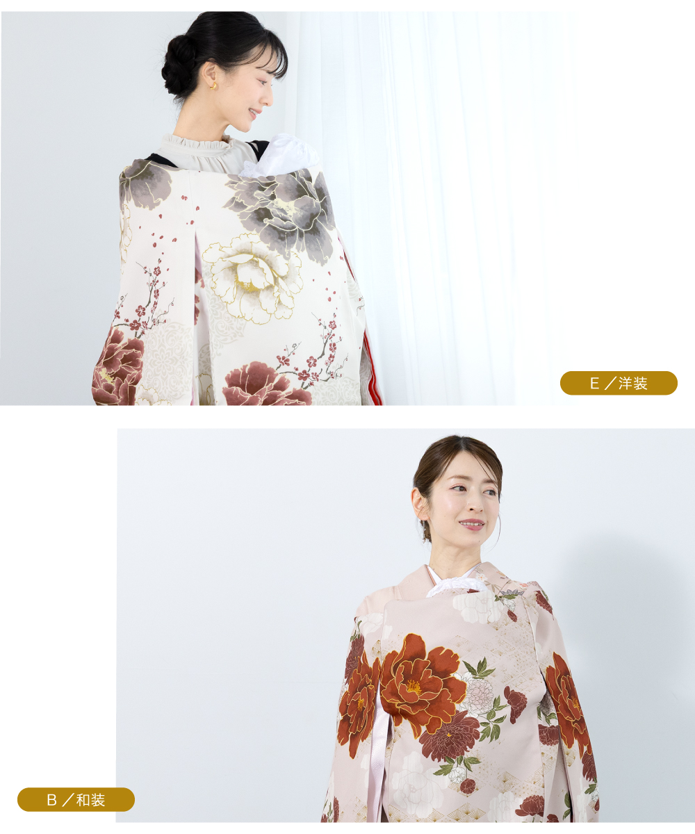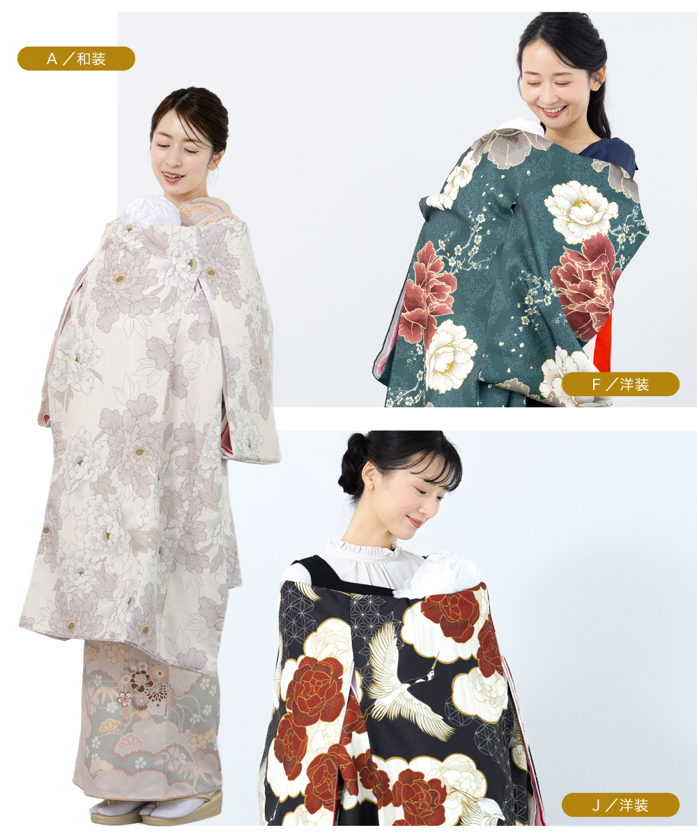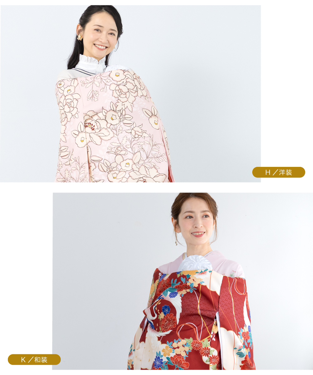 ※着物の柄部分は大きな生地を使用して作られておりますので、色や柄の出方、模様の配置等が画像と異なる場合がございます。