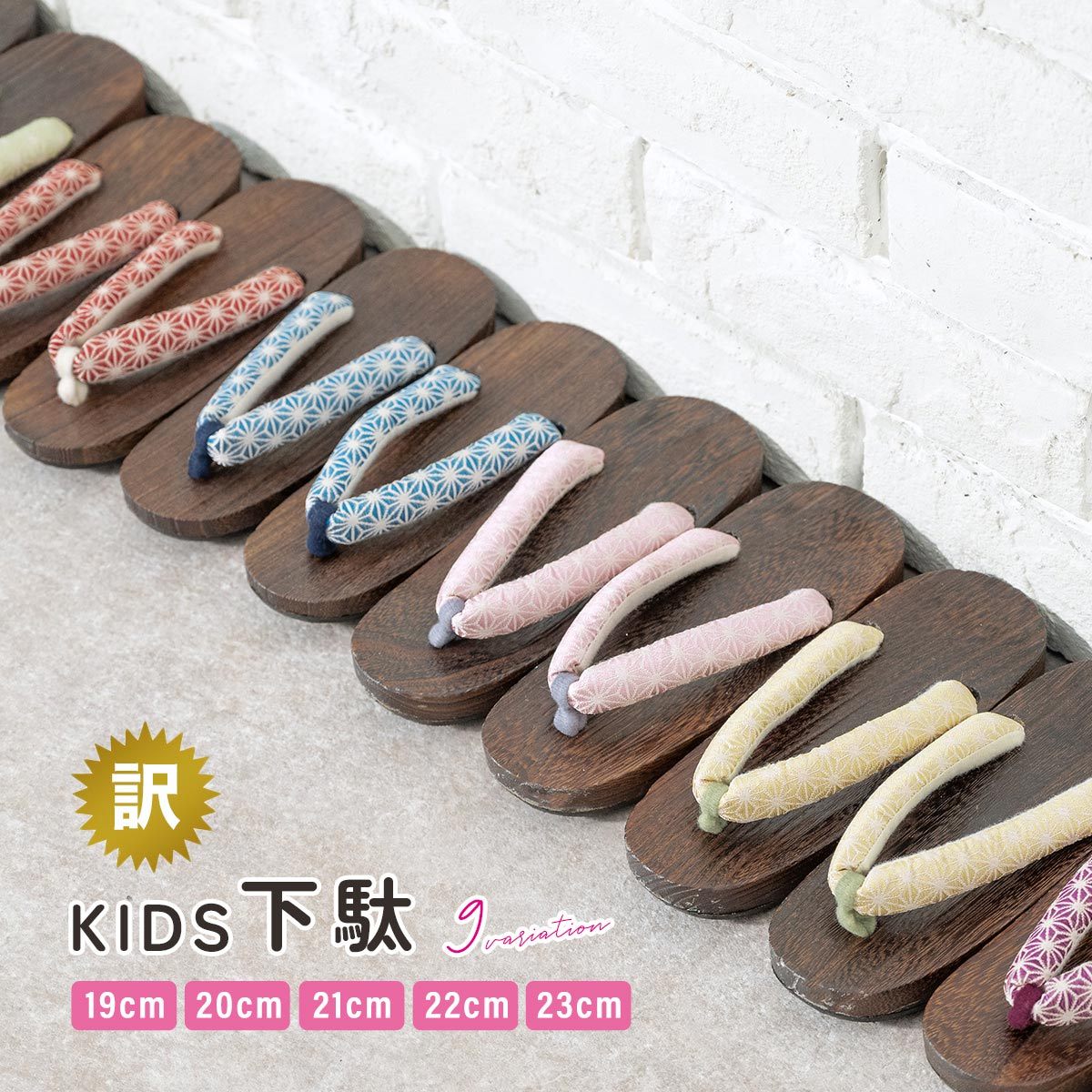 下駄 キッズ 訳あり 創美苑オリジナル 茶色台 麻の葉 右近型 女の子向け 女児用 浴衣向け 夏向け 子供用 こども用 げた ゲタ 和装小物 19.0cm〜23.0cm