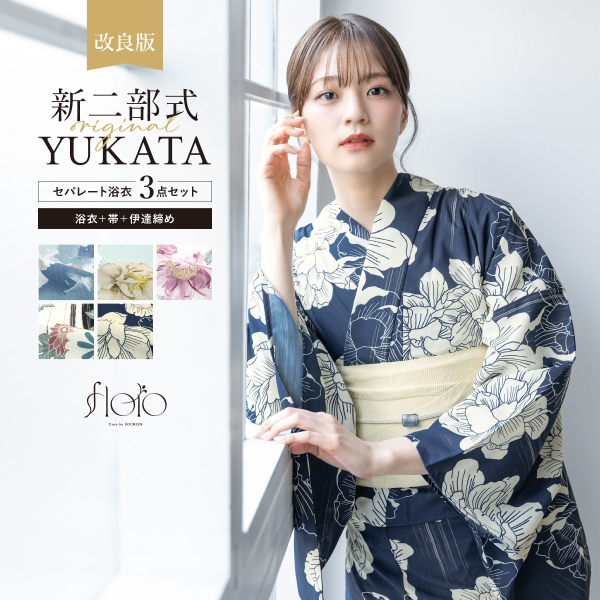【予約】簡単着付け セパレート浴衣 レディース セット 浴衣 帯 伊達締め 浴衣セット 女性 二部式浴衣 花柄 着付け 簡単 フリー floro 女の子 創美苑