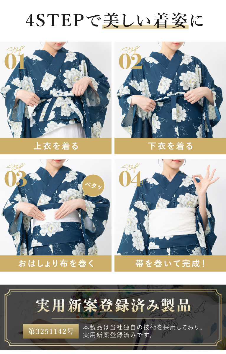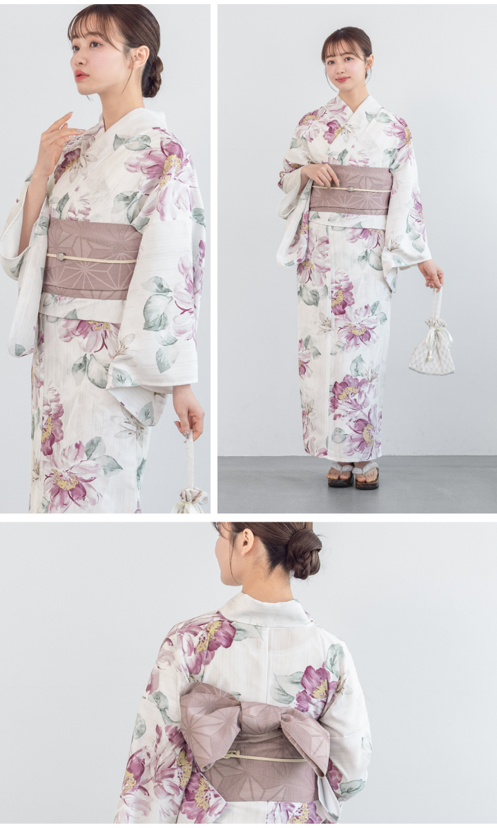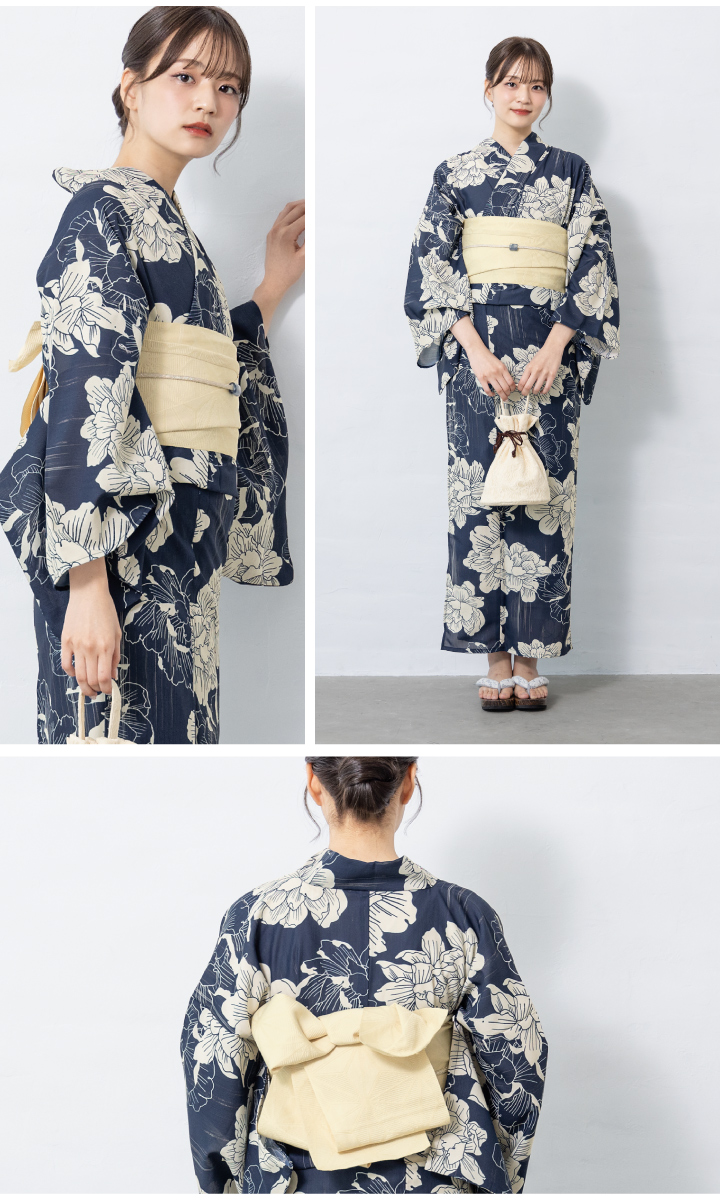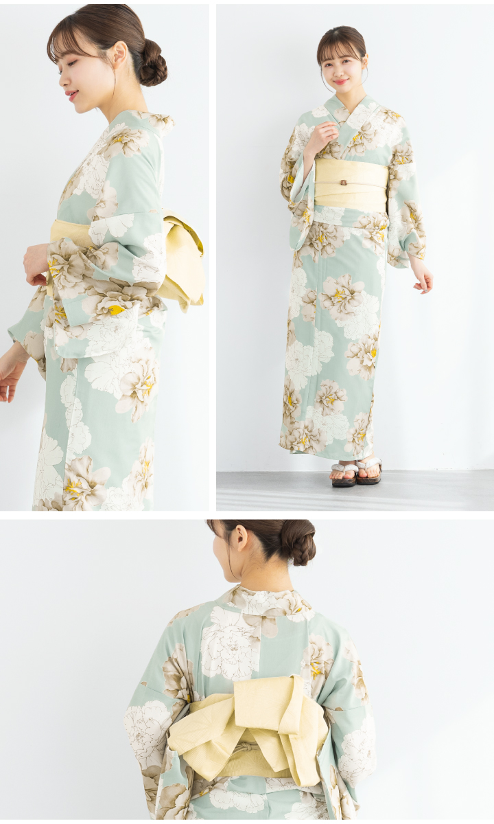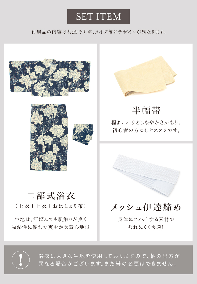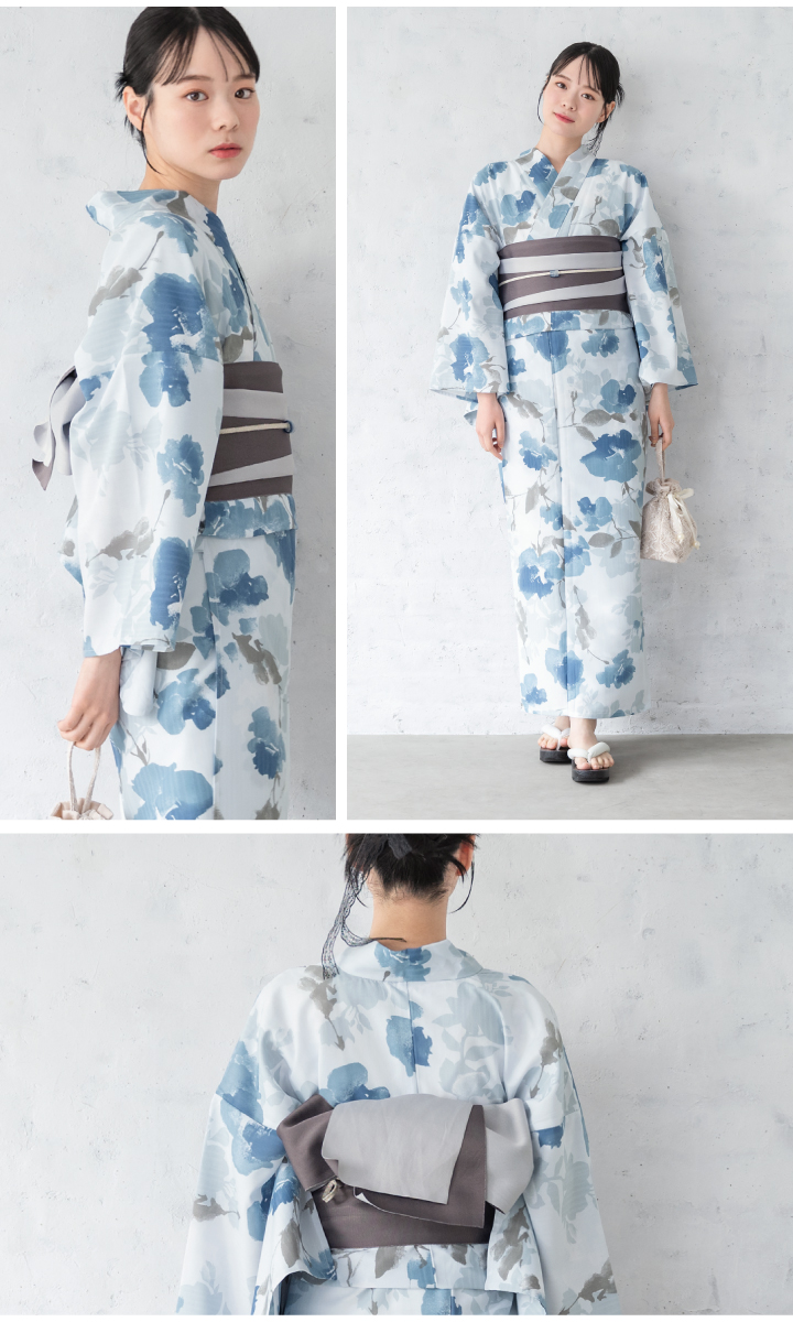 二部式浴衣(上衣+下衣+おはしょり布)・帯・伊達締め