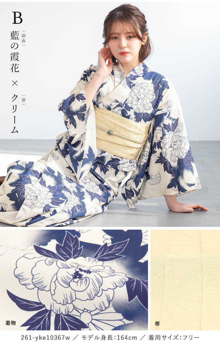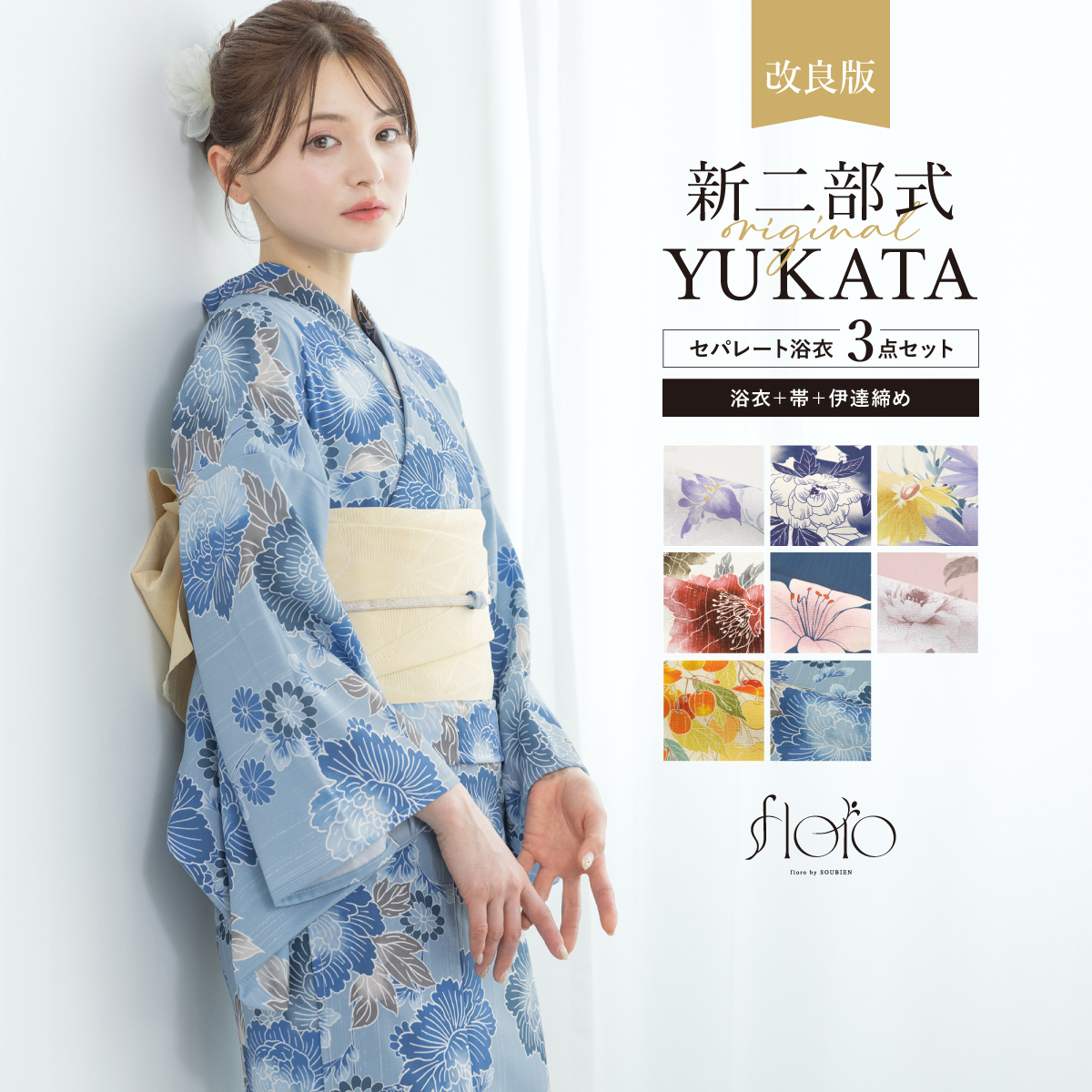 【予約】浴衣セット セパレート 二部式 レディース 3点セット 浴衣 半幅帯 伊達締め セット 白 紺 青 ピンク くすみ 花柄 着付け 簡単 フリー floro 創美苑