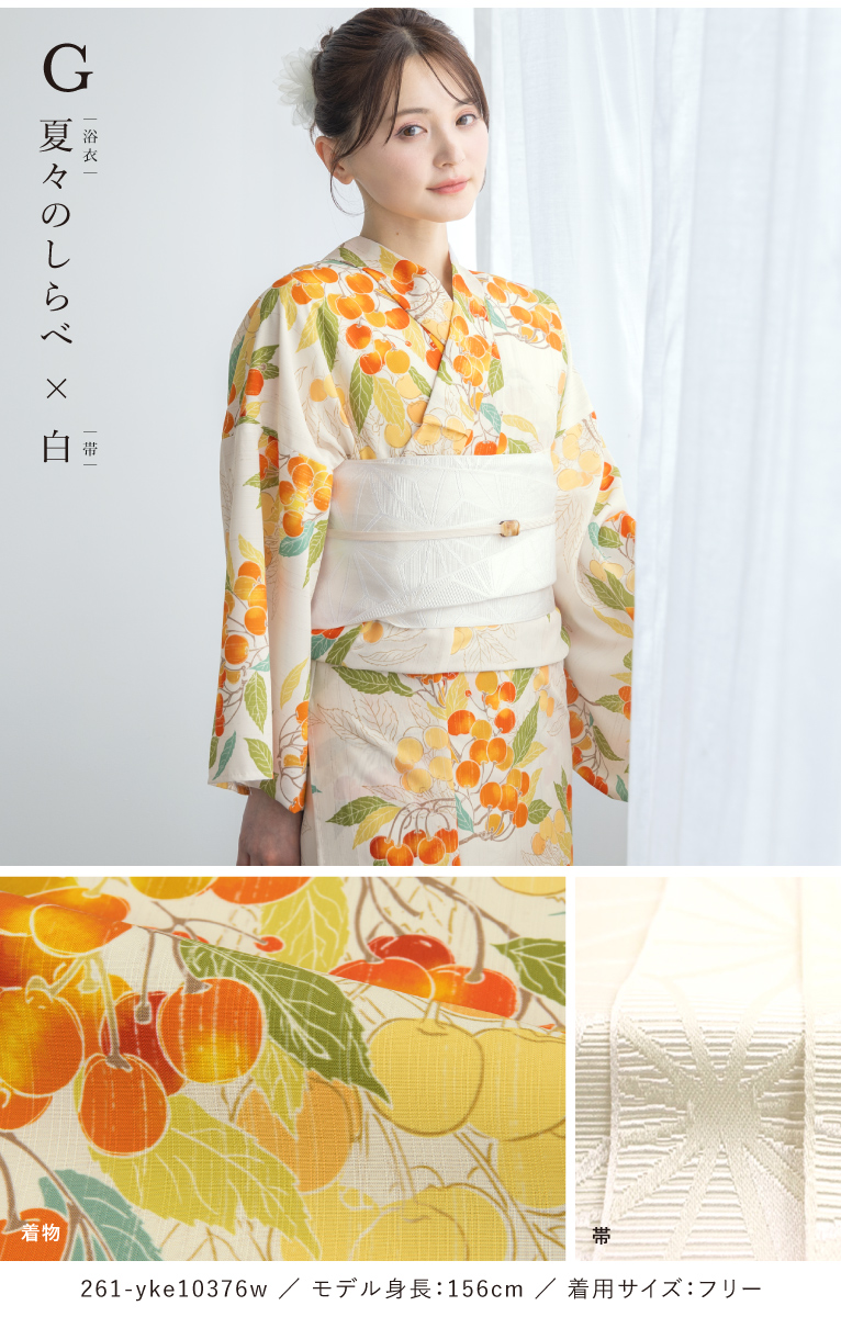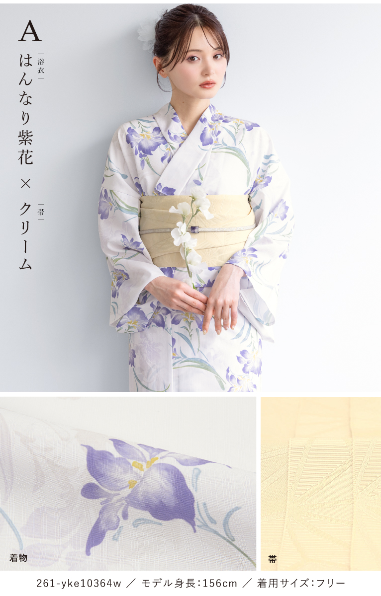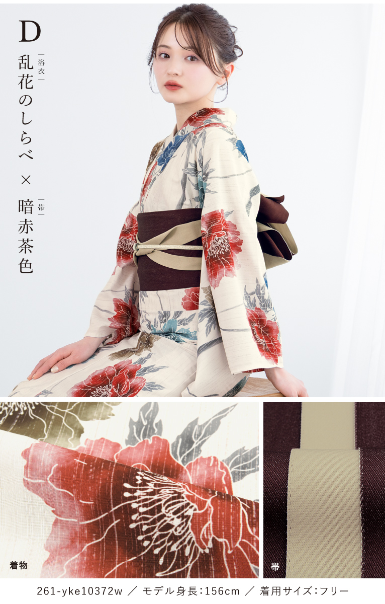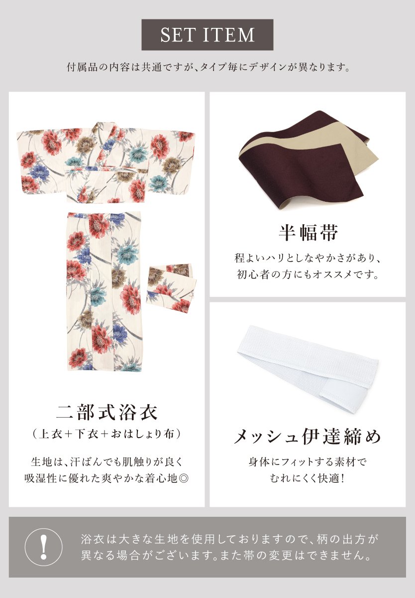 二部式浴衣(上衣+下衣+おはしょり布)・帯・伊達締め