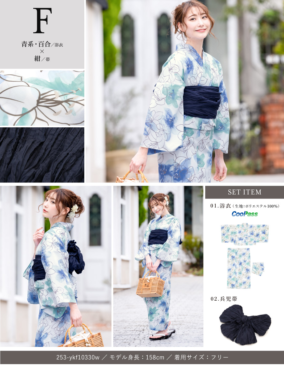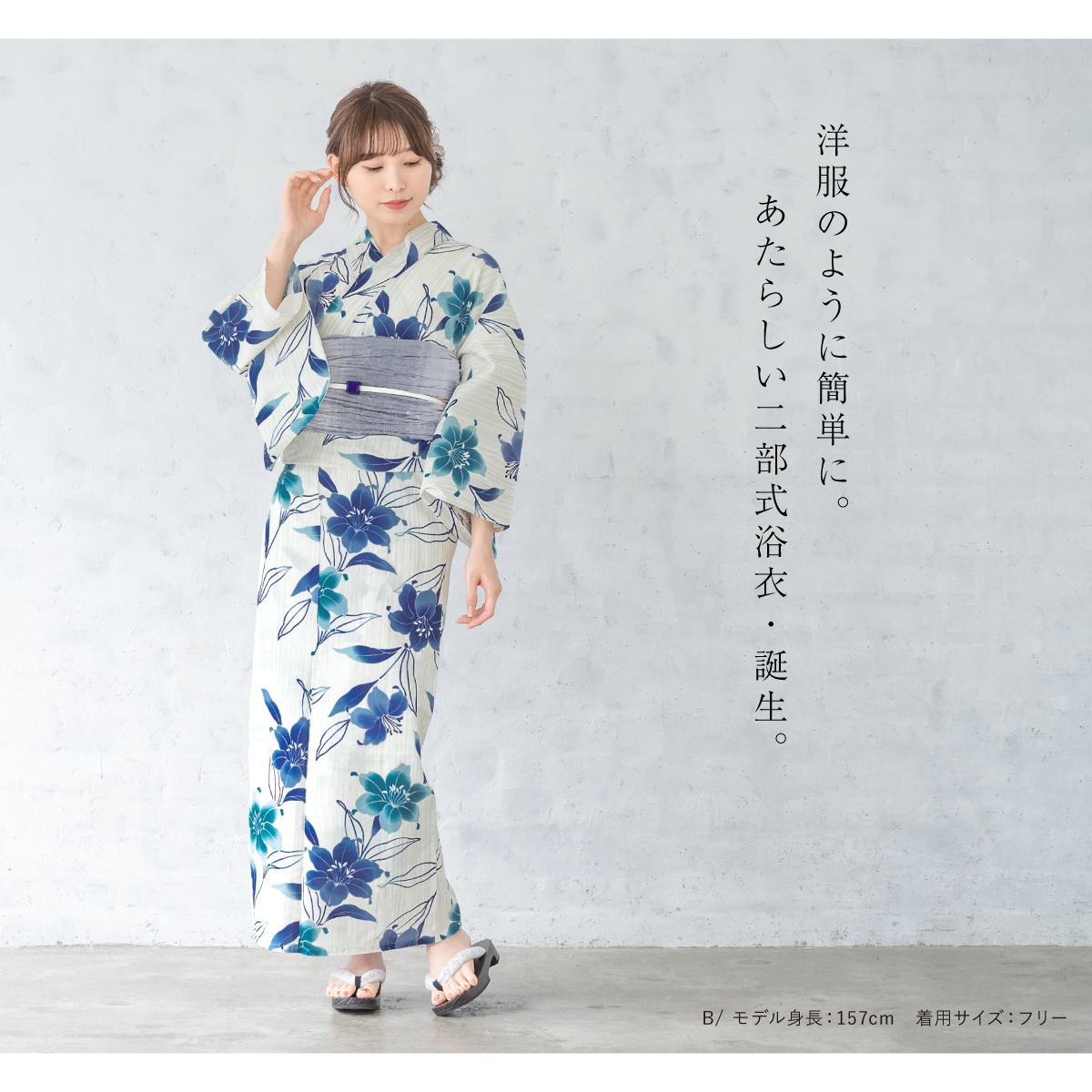 浴衣 セット レディース セパレート浴衣 二部式 夏 浴衣セット 兵児帯 簡単 吸水速乾 青 レディース浴衣 ゆかた ユカタ yukata モダン レトロ フリー