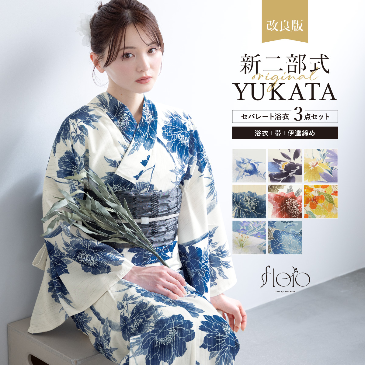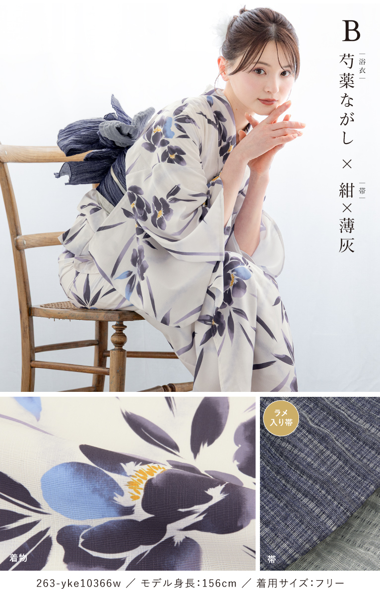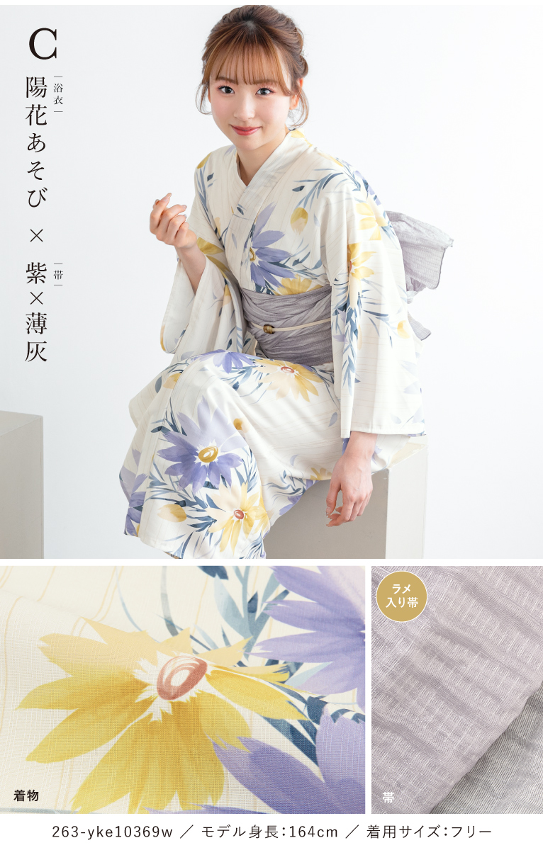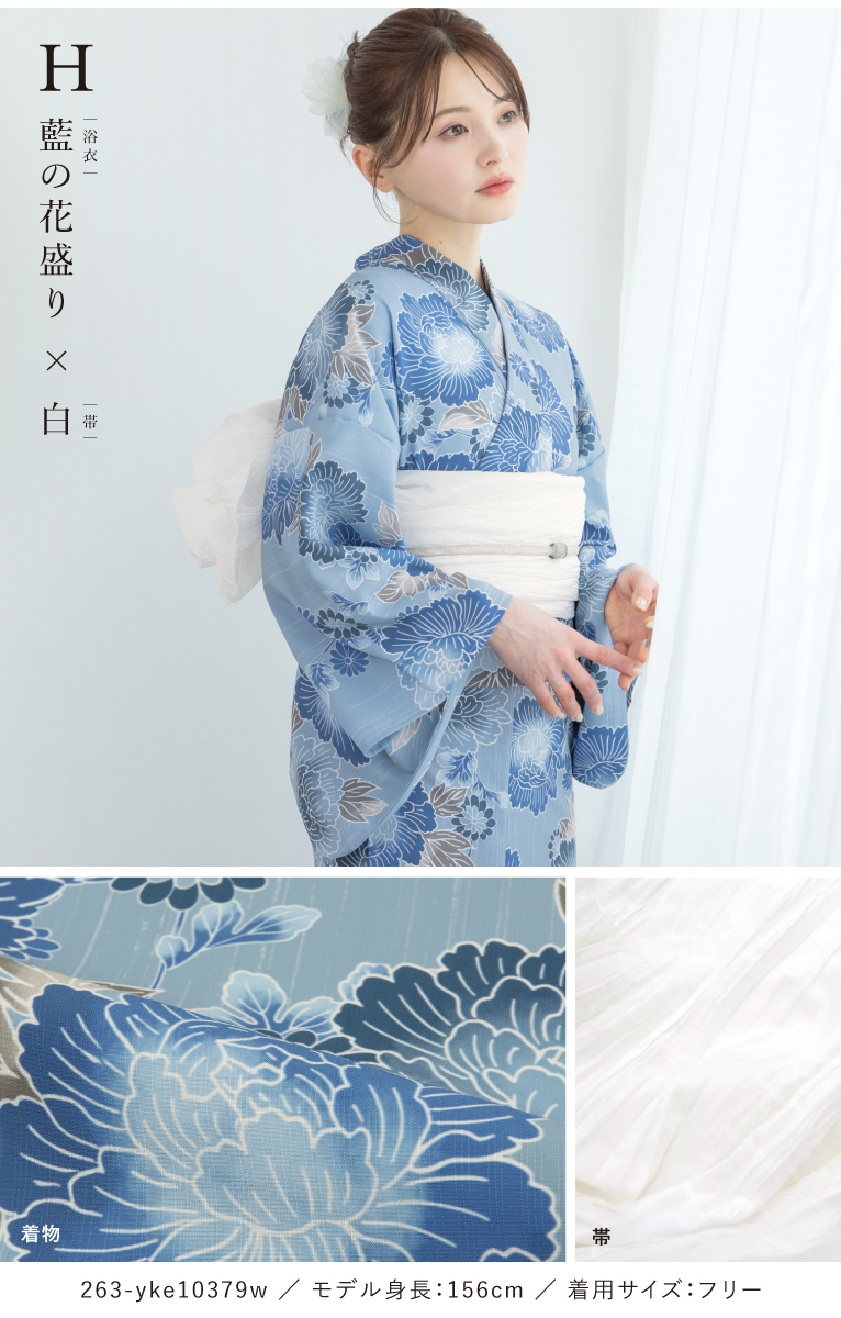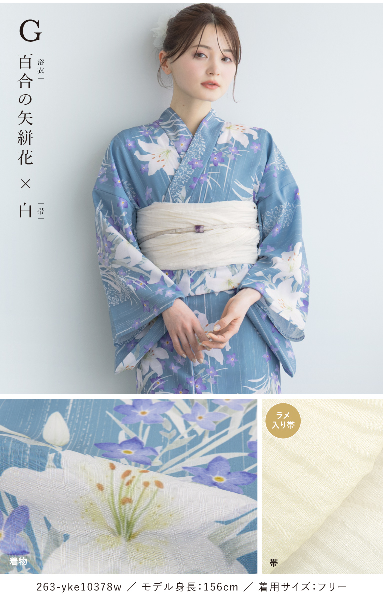 【予約】浴衣セット セパレート 二部式 レディース 3点セット 浴衣 兵児帯 伊達締め セット 白 ブルー オレンジ くすみ 花柄 着付け 簡単 フリー floro 創美苑