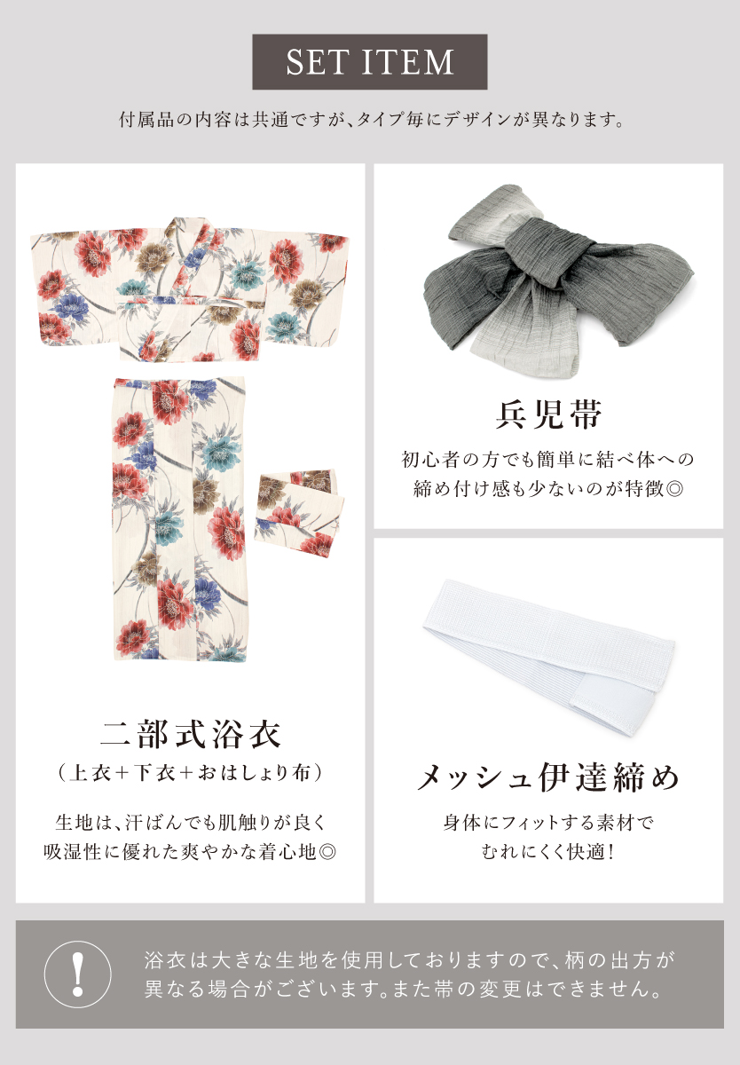 夏祭りにおすすめな二部式セパレート浴衣セット
