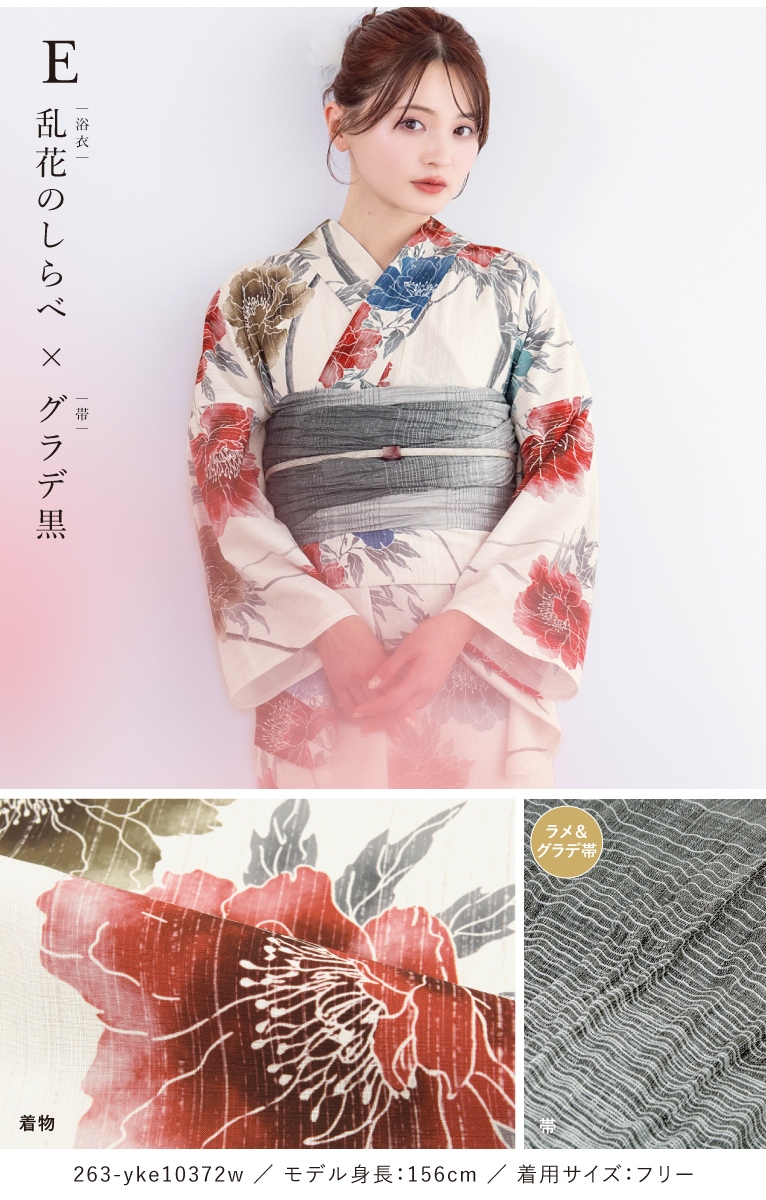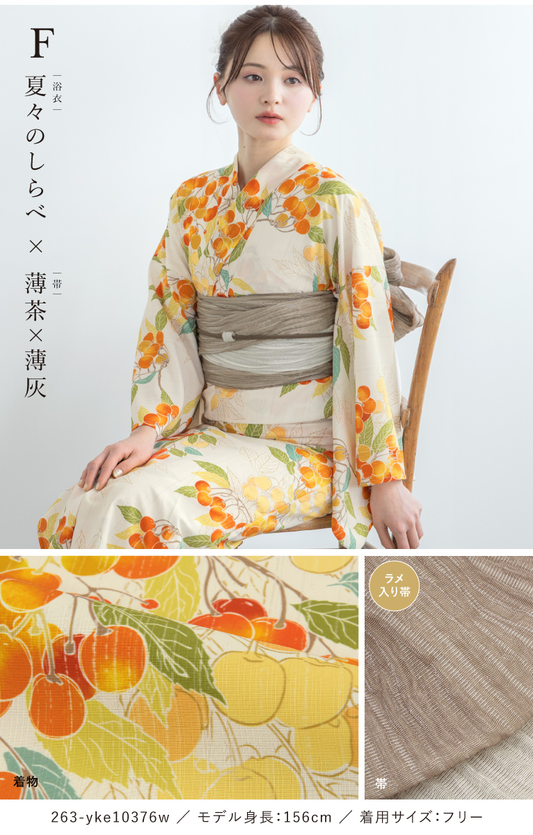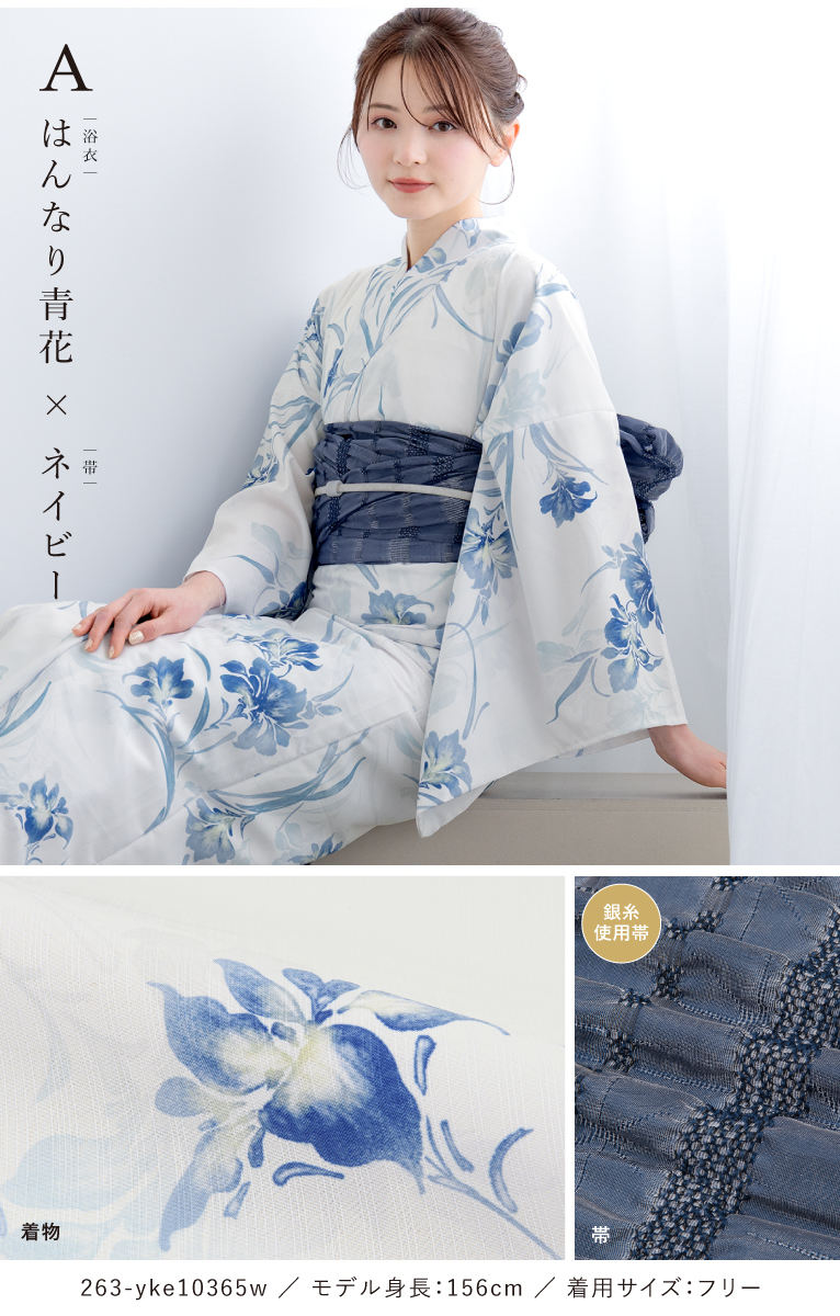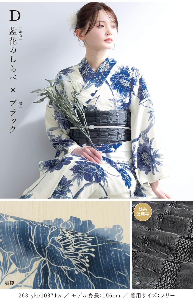二部式浴衣(上衣+下衣+おはしょり布)・帯・伊達締め