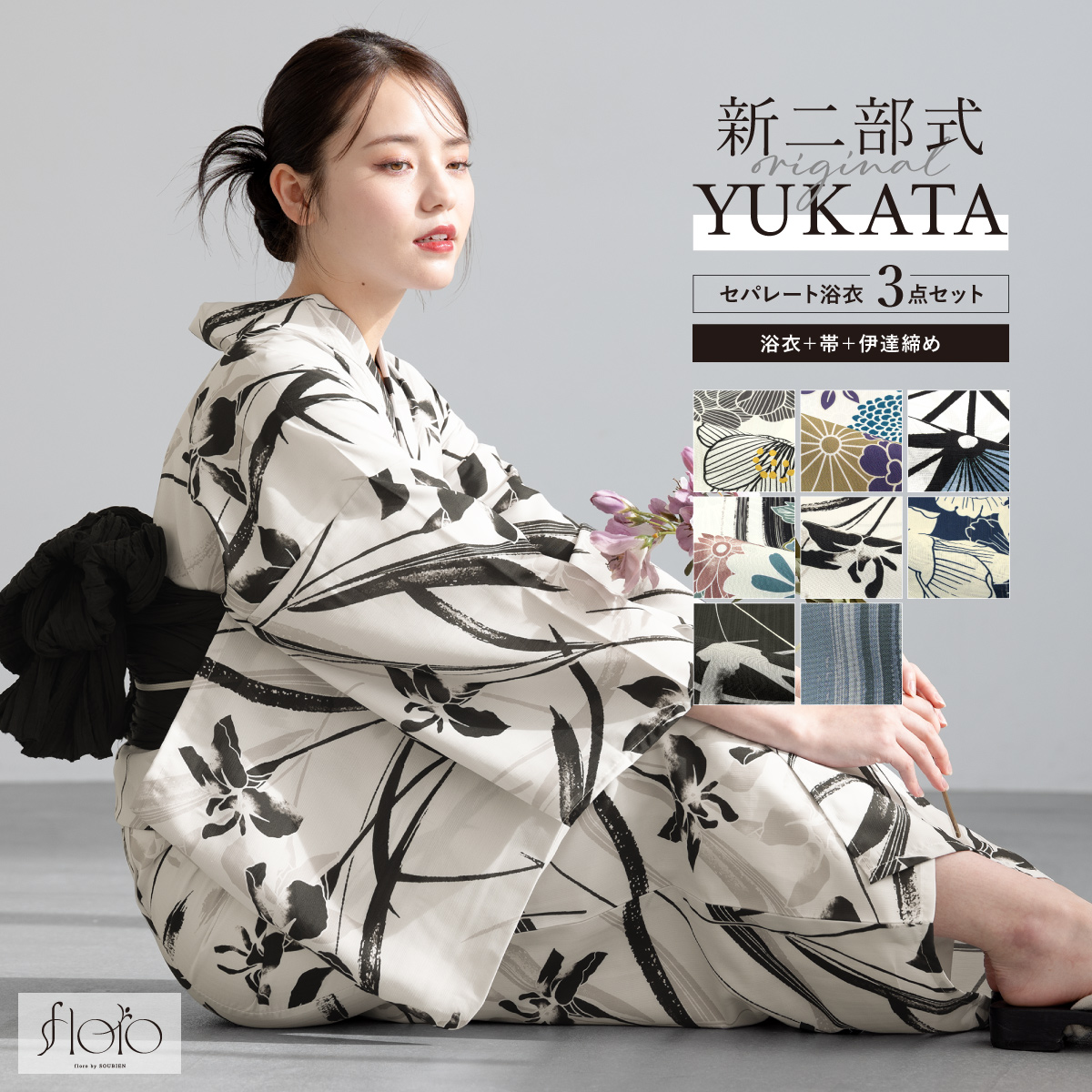浴衣 セット レディース セパレート浴衣 二部式 夏 浴衣セット 兵児帯 floro 吸水速乾 簡単 レディース浴衣 ゆかた ユカタ yukata モダン レトロ フリー