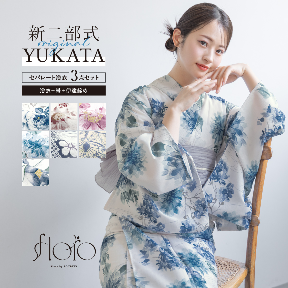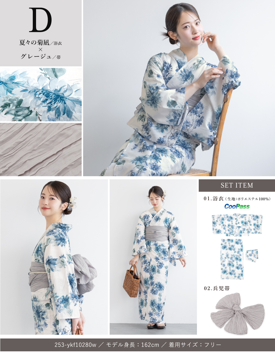 浴衣 セット レディース セパレート浴衣 二部式 夏 浴衣セット 兵児帯 floro 吸水速乾 簡単 レディース浴衣 ゆかた ユカタ yukata モダン レトロ フリー