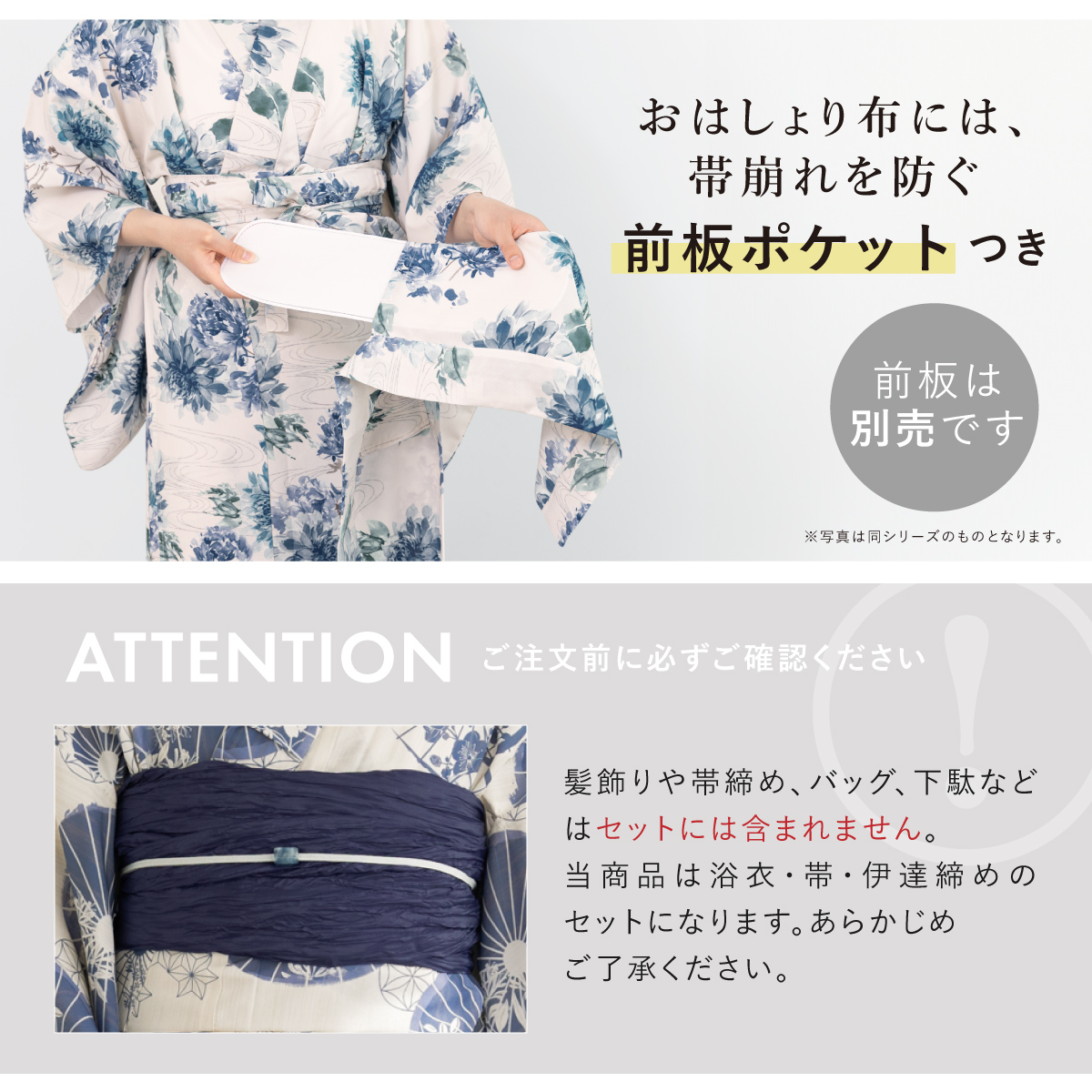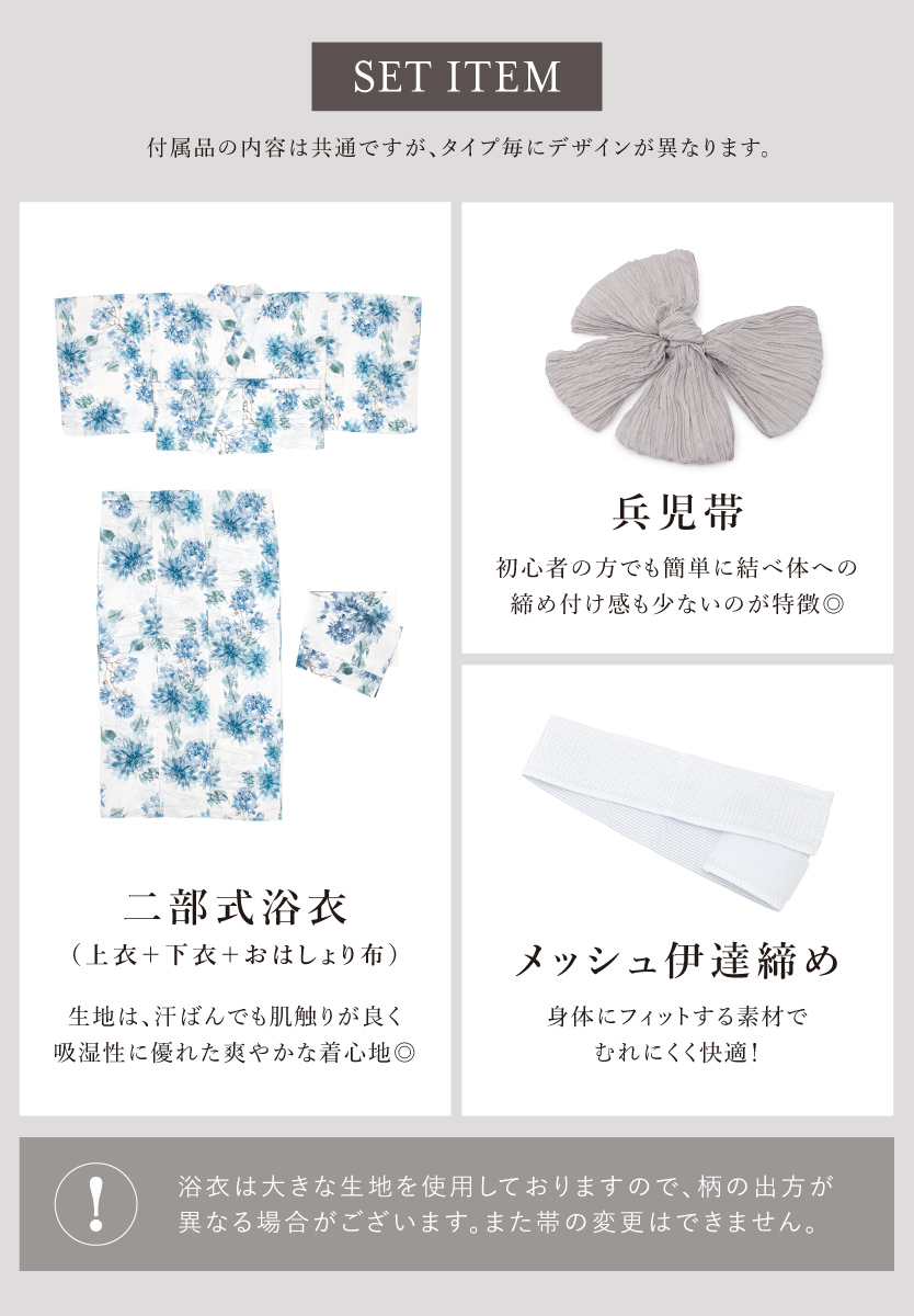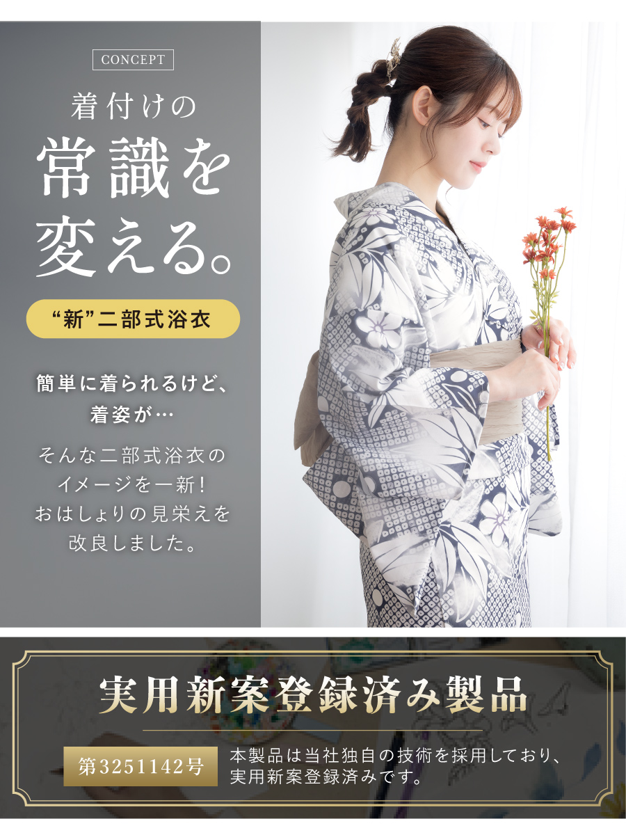 ※製造の都合上、浴衣とおはしょり布の色味が若干異なる場合があります。