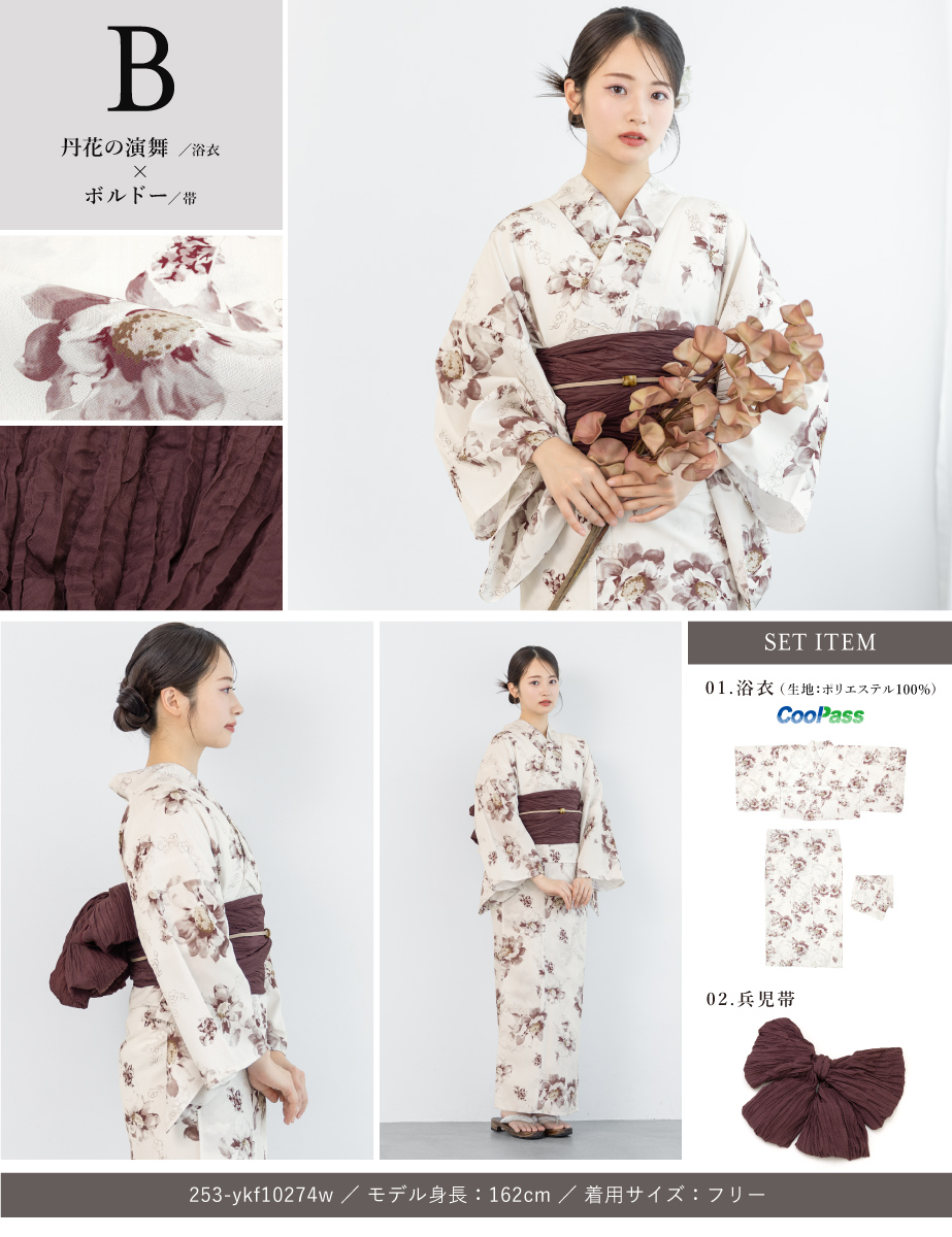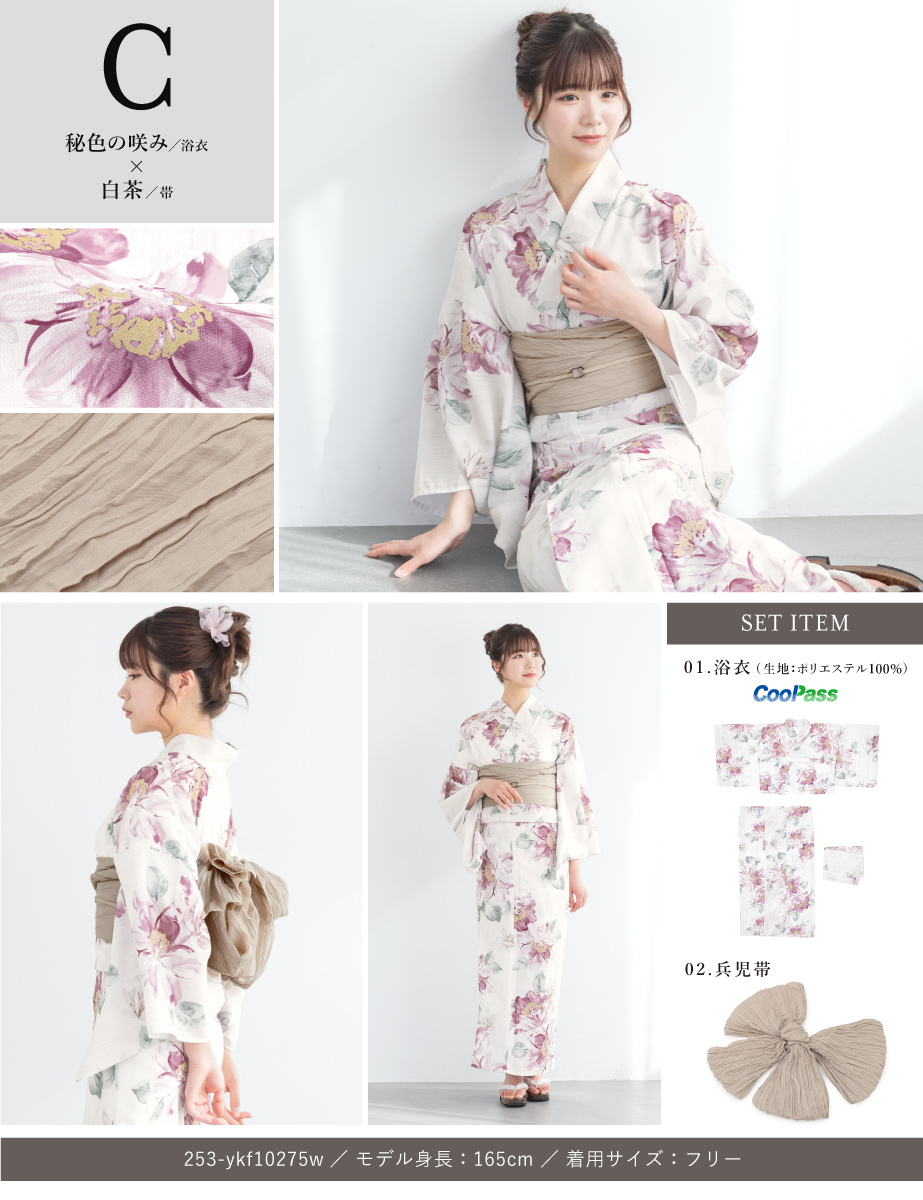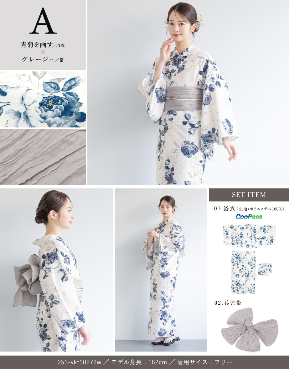 ※製造の都合上、浴衣とおはしょり布の色味が若干異なる場合があります。