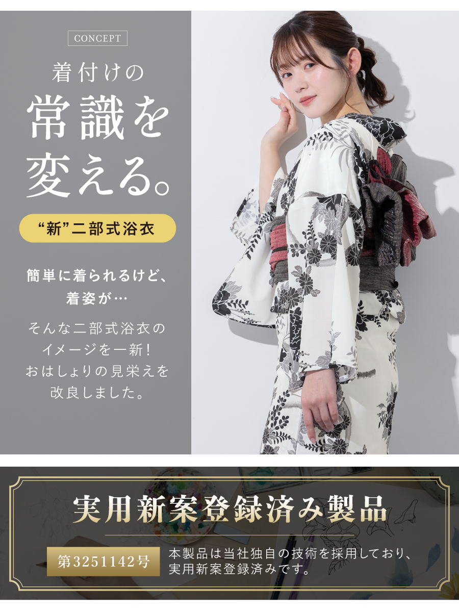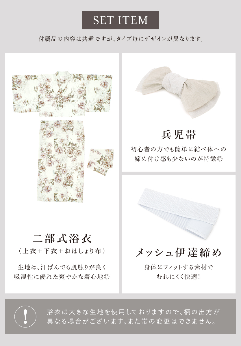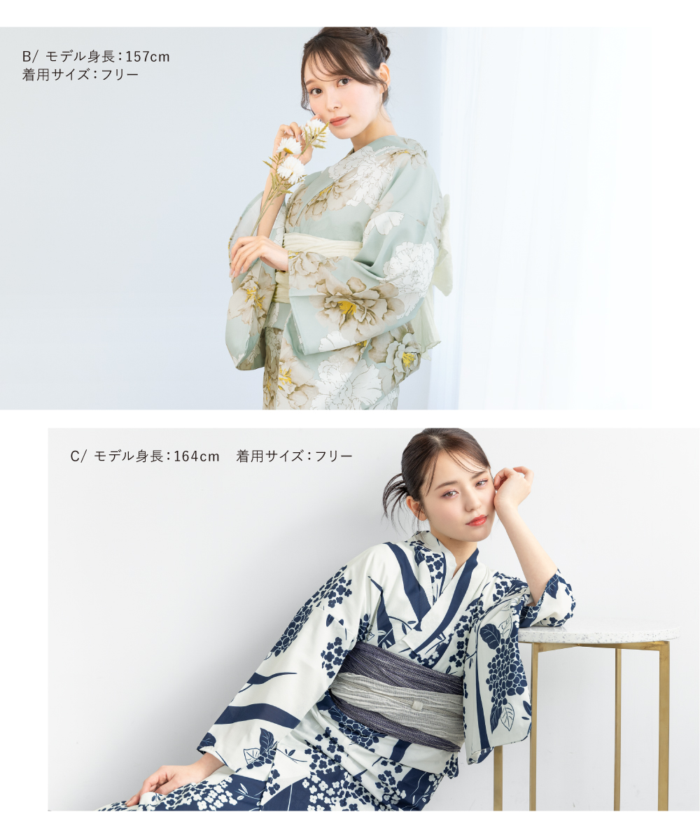 ※製造の都合上、浴衣とおはしょり布の色味が若干異なる場合があります。