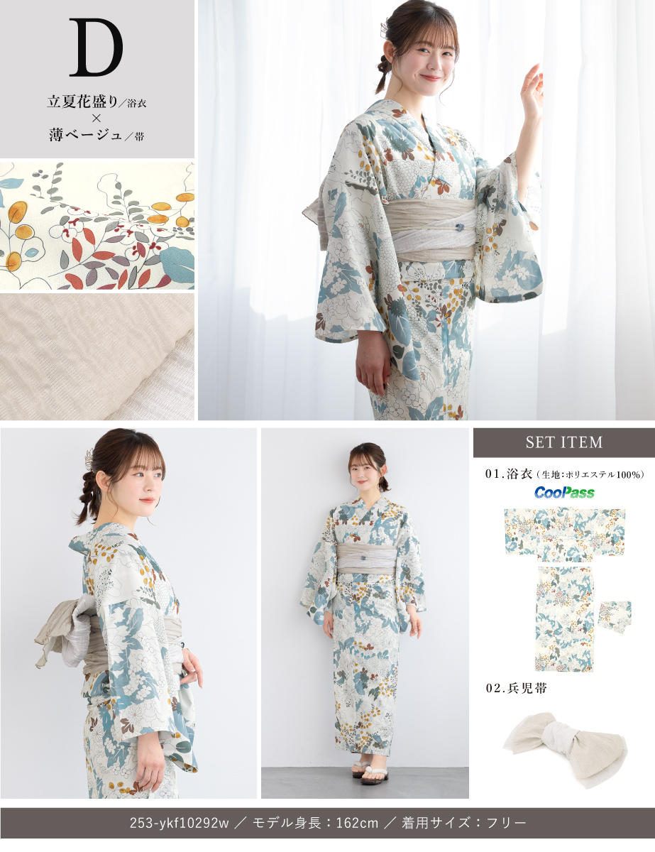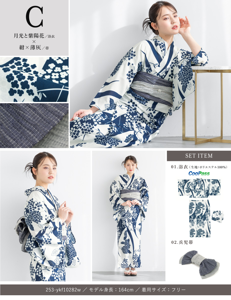 浴衣 セット レディース セパレート浴衣 二部式 夏 浴衣セット 兵児帯 floro 吸水速乾 簡単 レディース浴衣 ゆかた ユカタ yukata モダン レトロ フリー