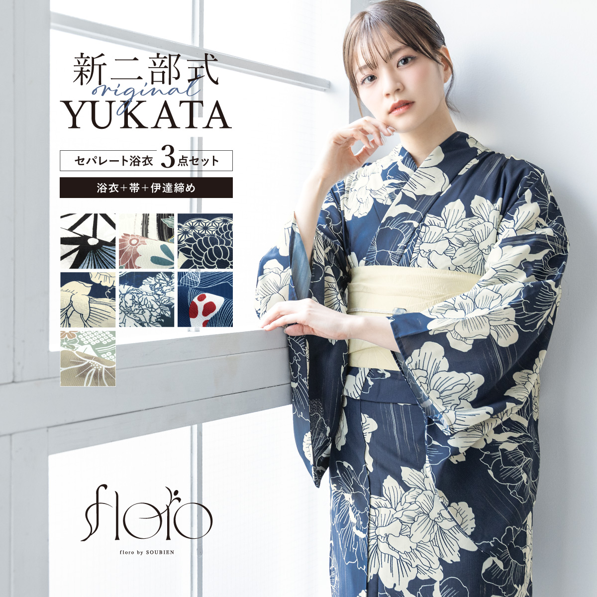 浴衣 セット レディース セパレート浴衣 二部式 夏 浴衣セット 半幅帯 floro 吸水速乾 簡単 レディース浴衣 ゆかた ユカタ yukata モダン レトロ フリー