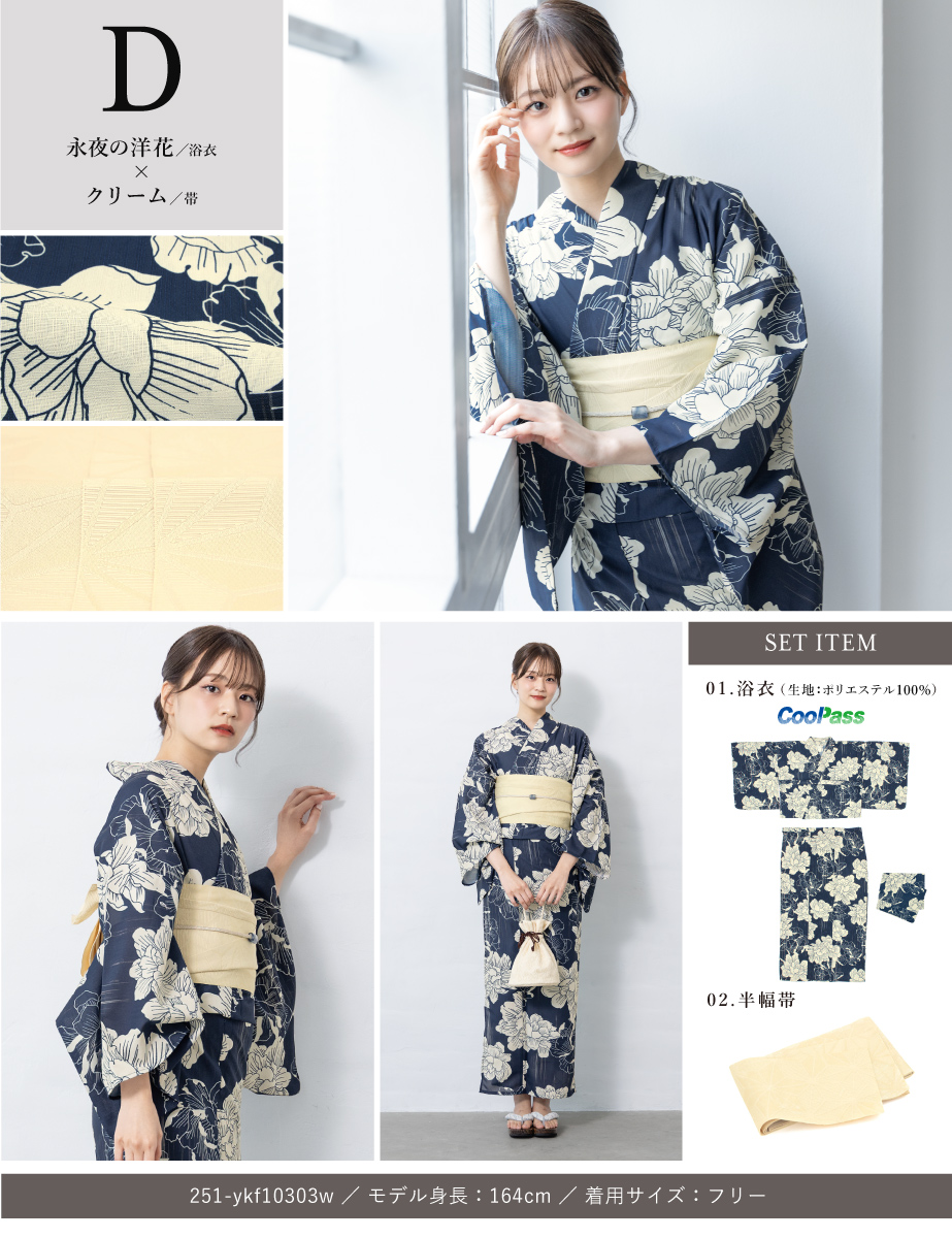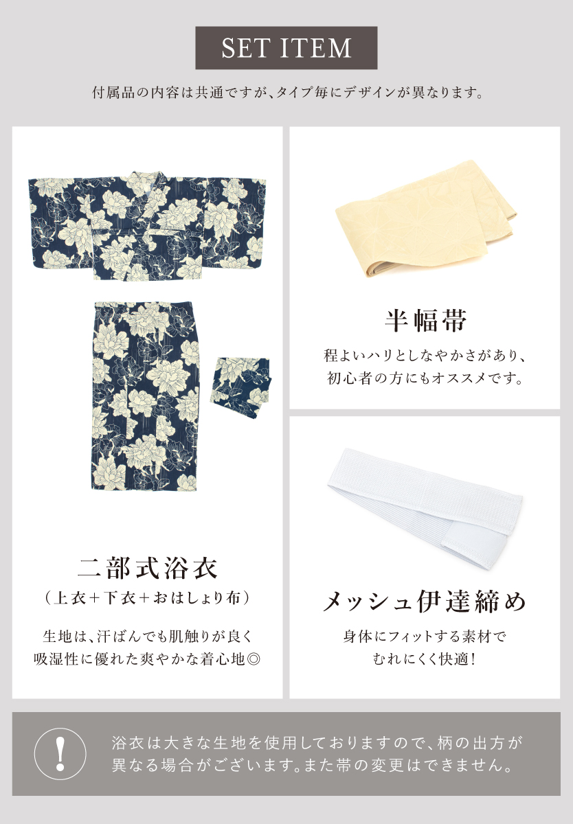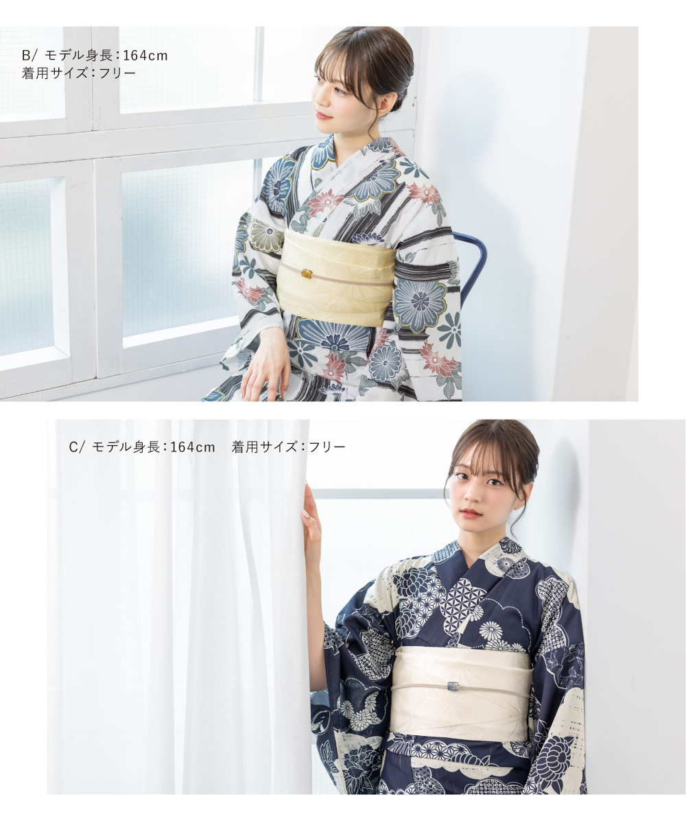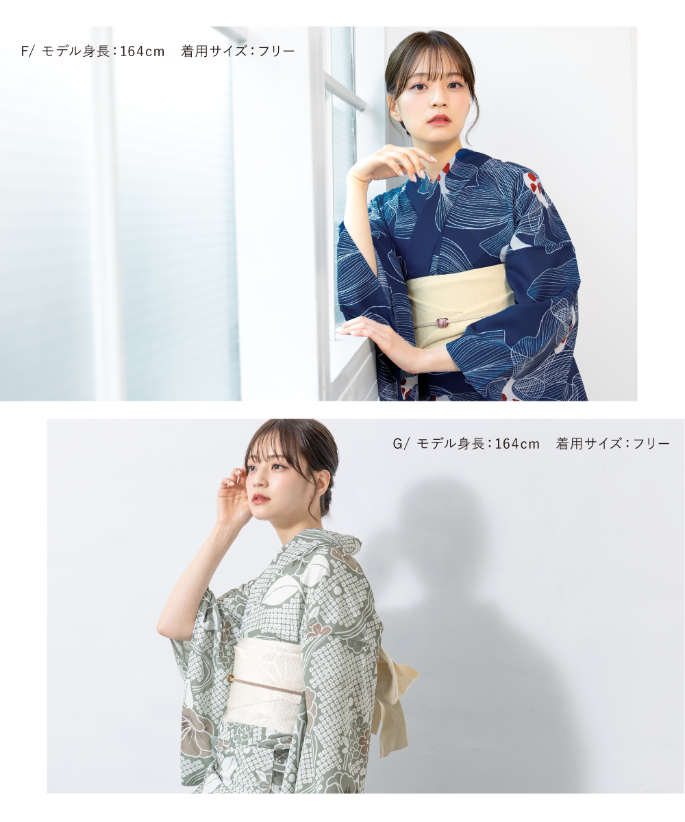 ※製造の都合上、浴衣とおはしょり布の色味が若干異なる場合があります。