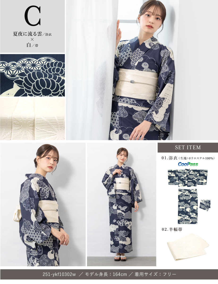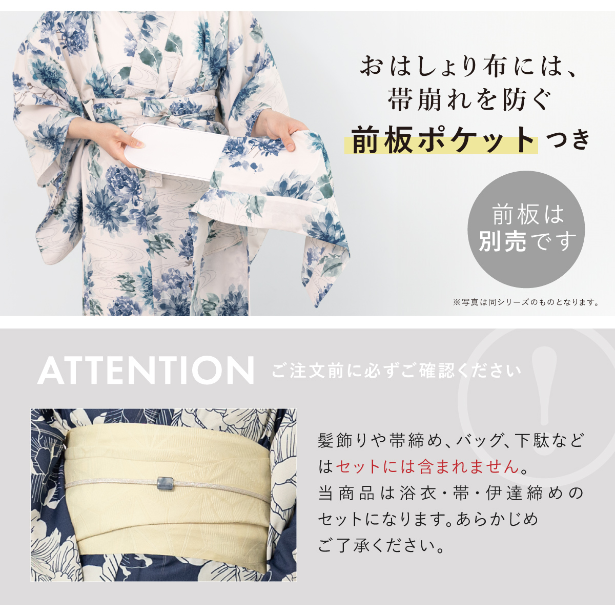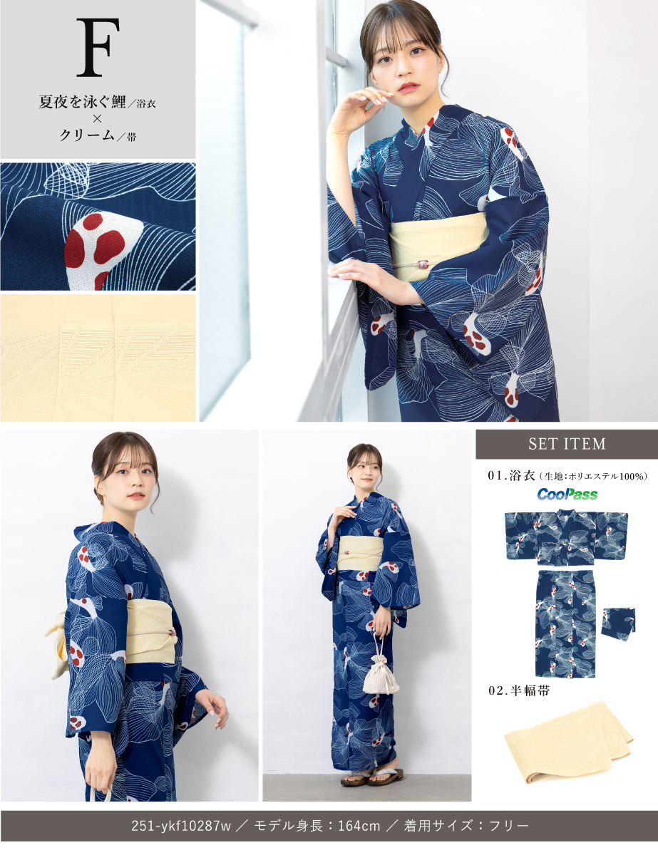 ※製造の都合上、浴衣とおはしょり布の色味が若干異なる場合があります。