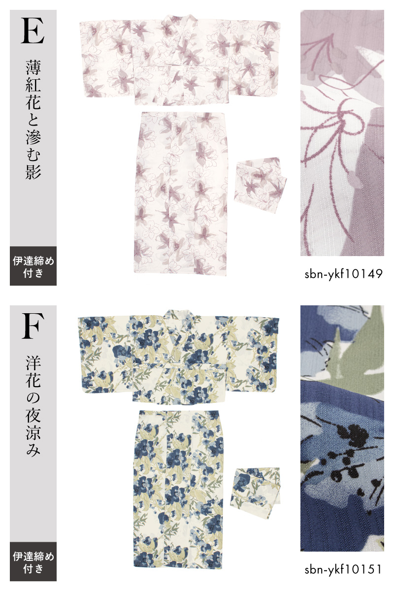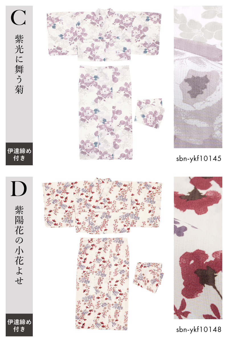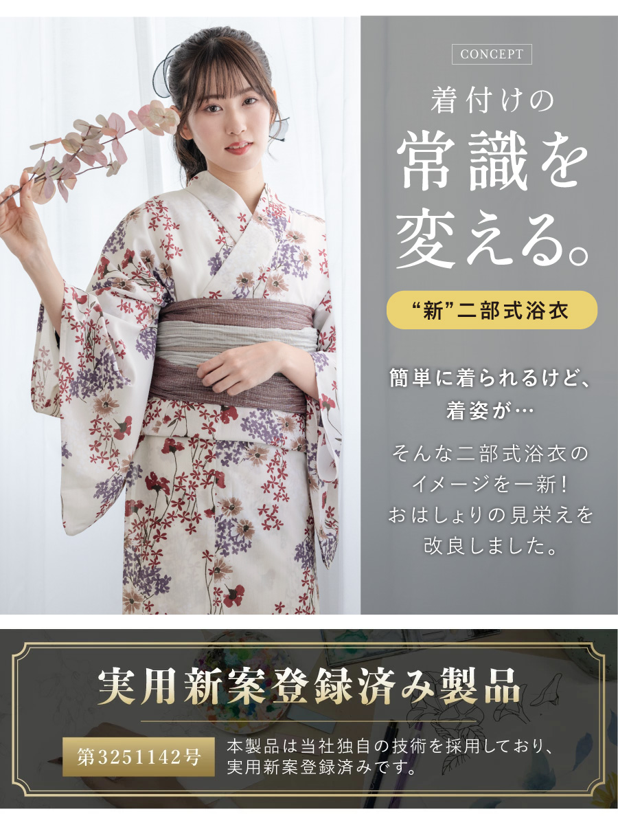 浴衣 単品 レディース 二部式 セパレート floro 簡単 涼しい 白 青 黄 紫 ピンク ベージュ 花柄 伊達締め フリー 2026