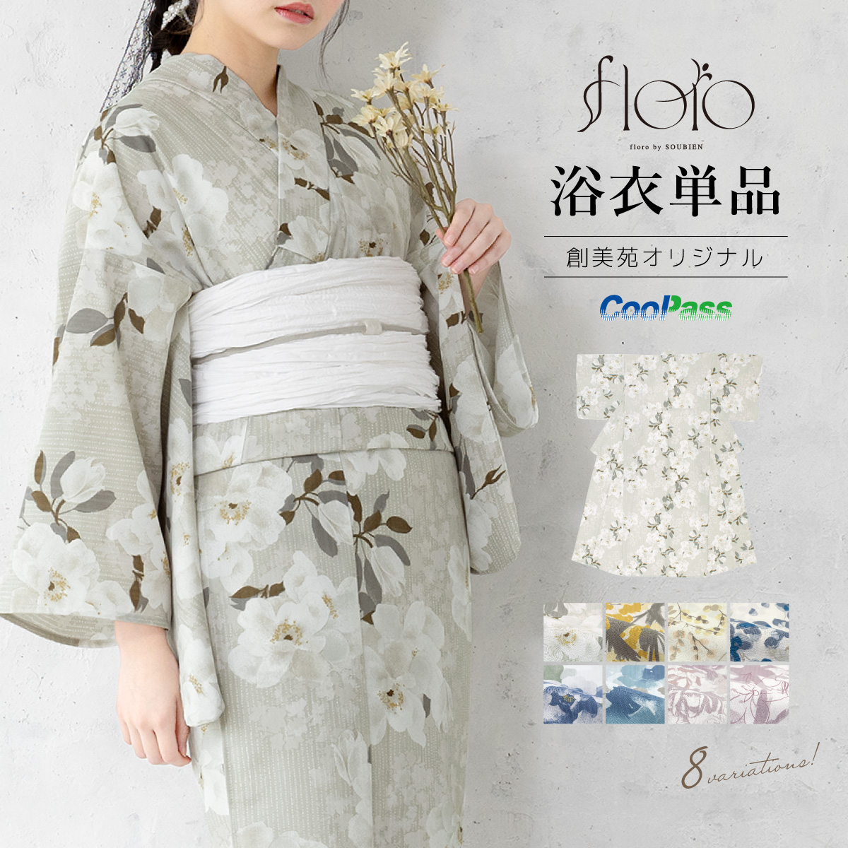 浴衣 レディース 単品 大人 グレー 白 ベージュ 青 ピンク 紫 吸水速乾 CoolPass ポリエステル SOUBIEN 女性 仕立て上がり 2025新作