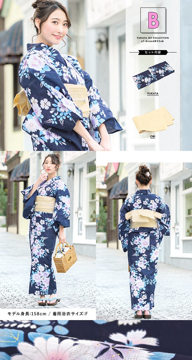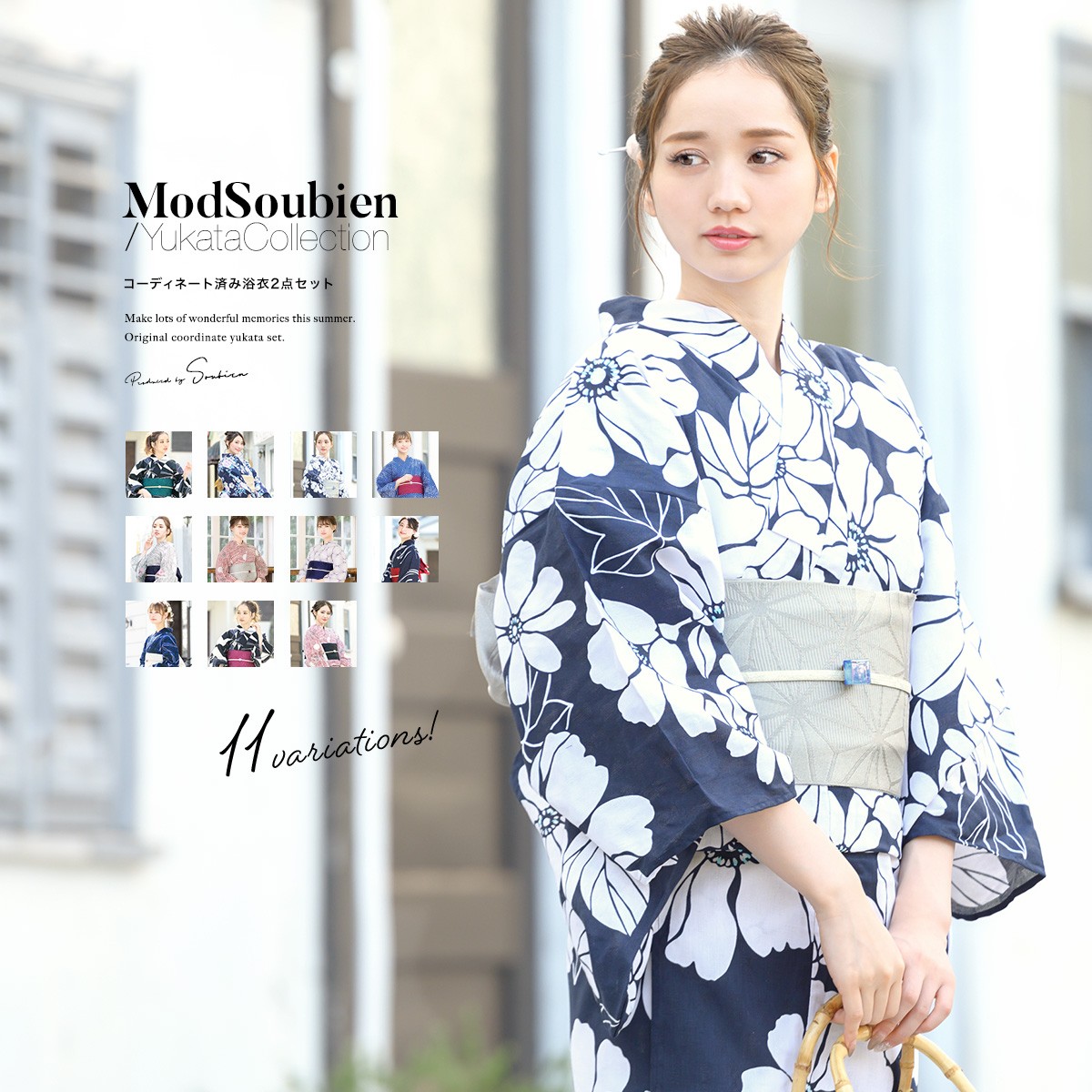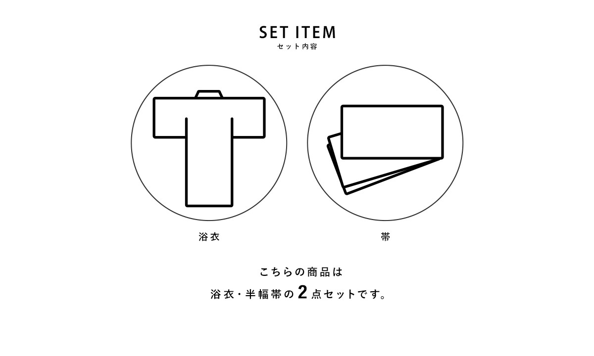 こちらの商品は、浴衣・帯の2点セットです。セット内容の一部変更や、それに伴う値引きは承っておりません。