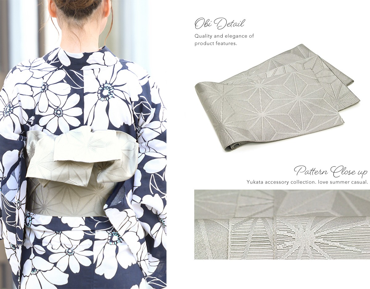 帯は、体に巻いて後ろで結ぶタイプの半幅帯です。
