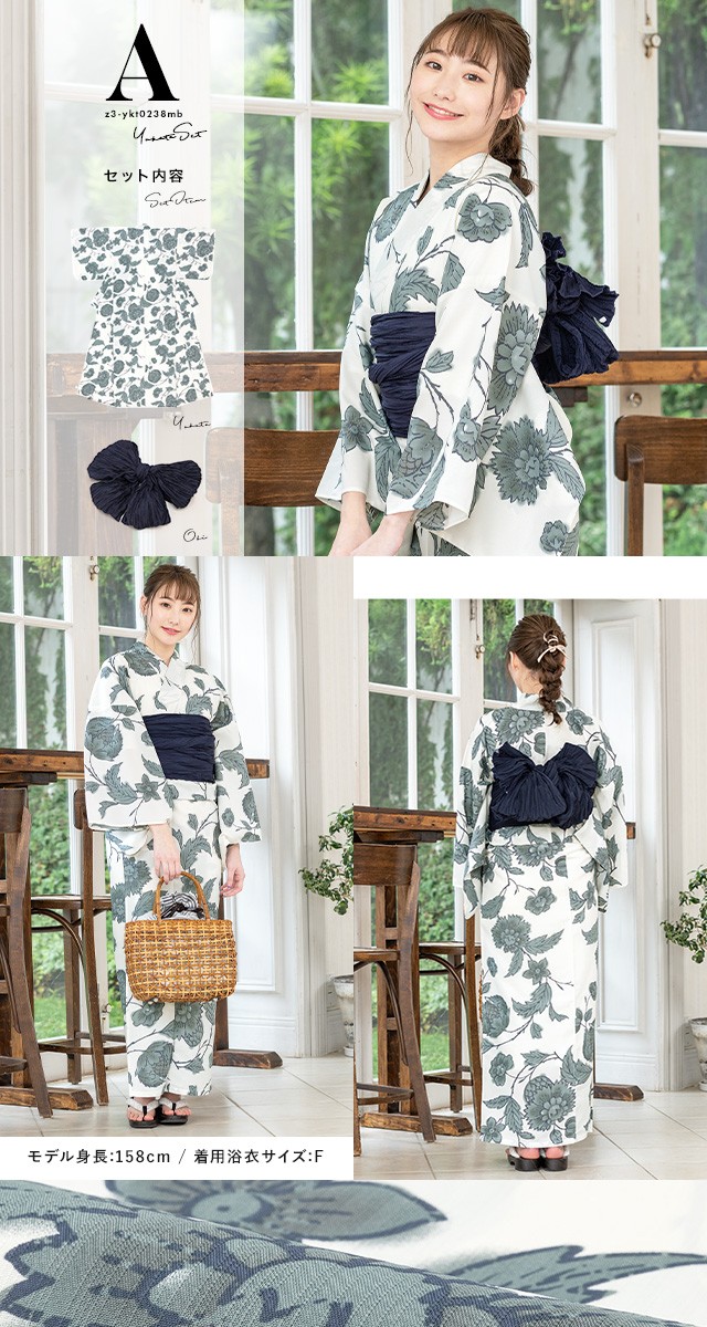 浴衣 セット レディース 大人 兵児帯 夏 2点セット 浴衣セット 兵児帯 レディース浴衣 ゆかた ユカタ yukata モダン フリー