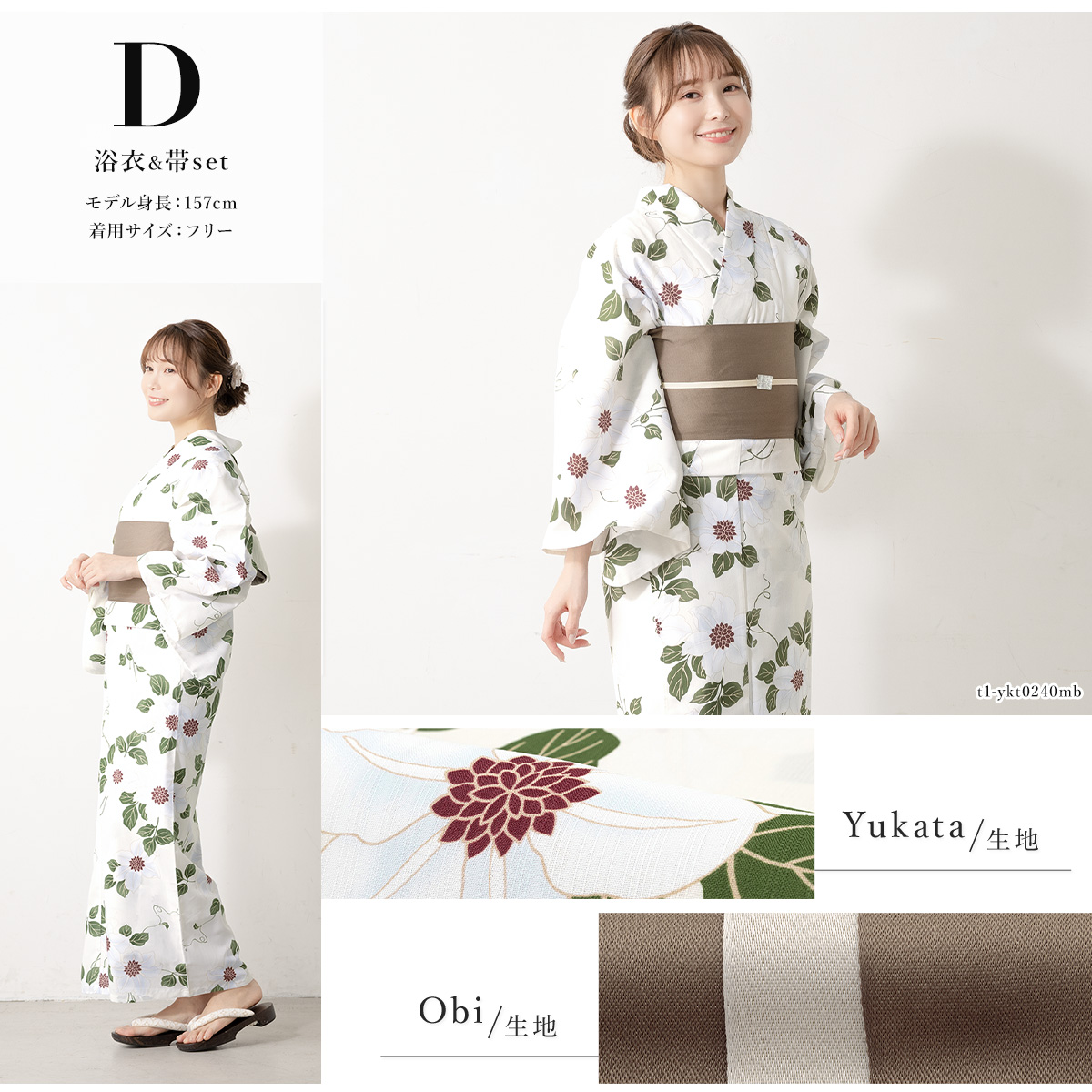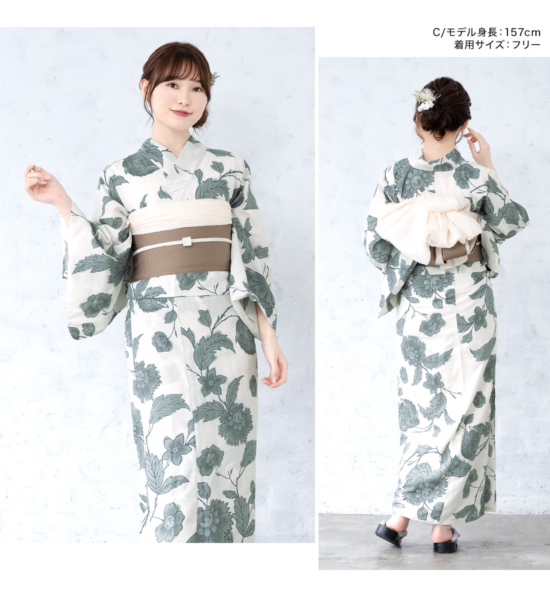 浴衣 セット レディース 大人 兵児帯 夏 2点セット 浴衣セット 半幅帯 白クリーム椿 レディース浴衣 ゆかた ユカタ yukata モダン フリー
