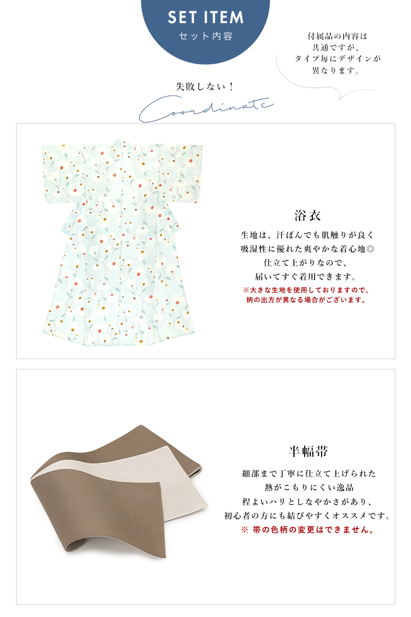 ※こちらの商品は、浴衣・帯の2点セットです。セット内容の一部変更や、それに伴う値引きは承っておりません。