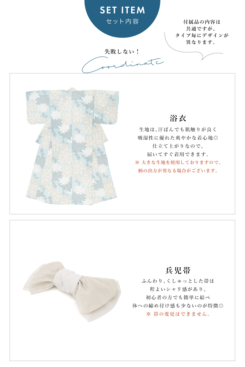 ※こちらの商品は、浴衣・帯の2点セットです。セット内容の一部変更や、それに伴う値引きは承っておりません。