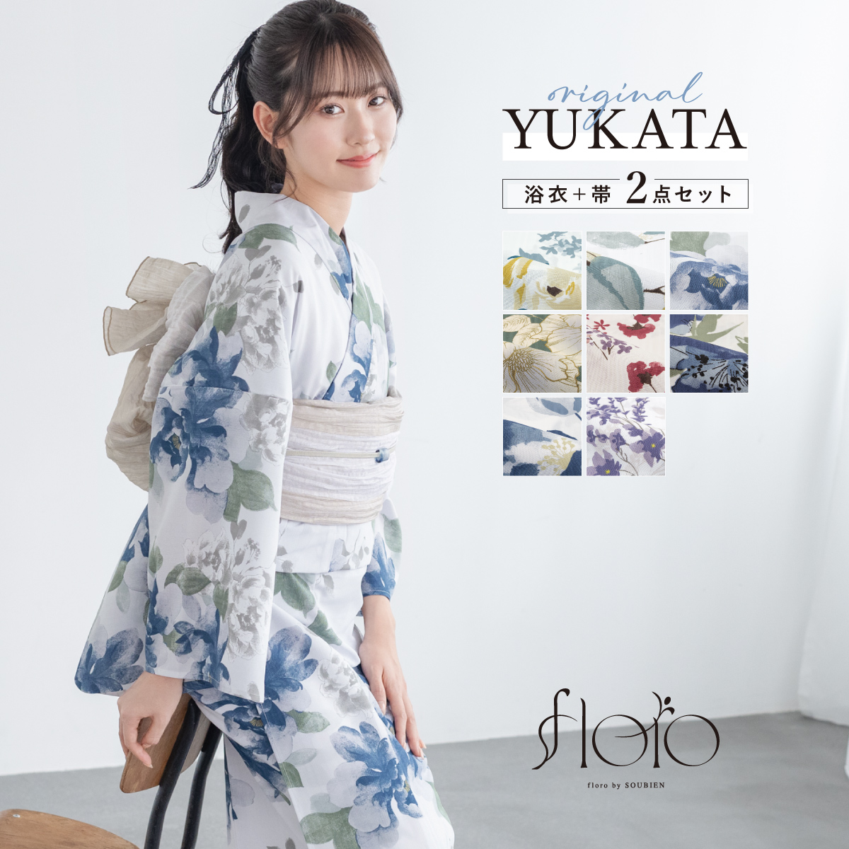 浴衣 セット レディース 大人 兵児帯 夏 2点セット 浴衣セット 兵児帯 花 floro レディース浴衣 ゆかた ユカタ yukata モダン レトロ 花火大会 フリー