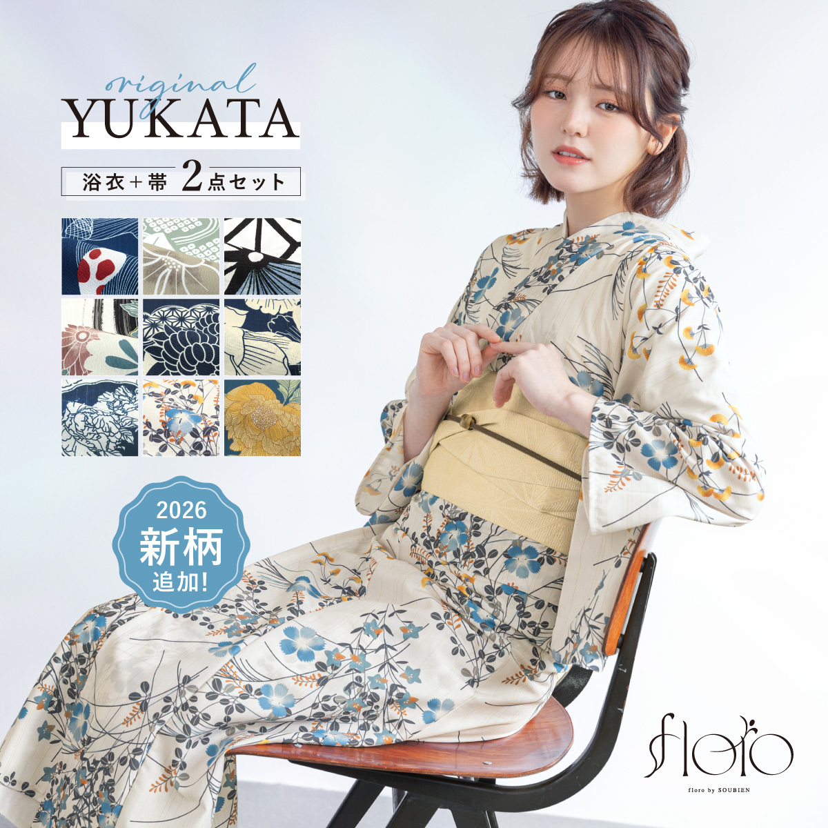 【予約】浴衣 レディース セット 2点セット 女性浴衣 帯 浴衣セット 女性 花柄 着付け 簡単 花火大会 夏祭り 上品 可愛い モダン S フリー floro 女の子 大人