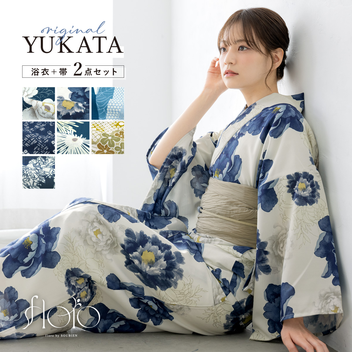 浴衣 セット レディース 大人 兵児帯 夏 2点セット 浴衣セット 兵児帯 floro レディース浴衣 ゆかた ユカタ yukata モダン レトロ 花火大会 フリー