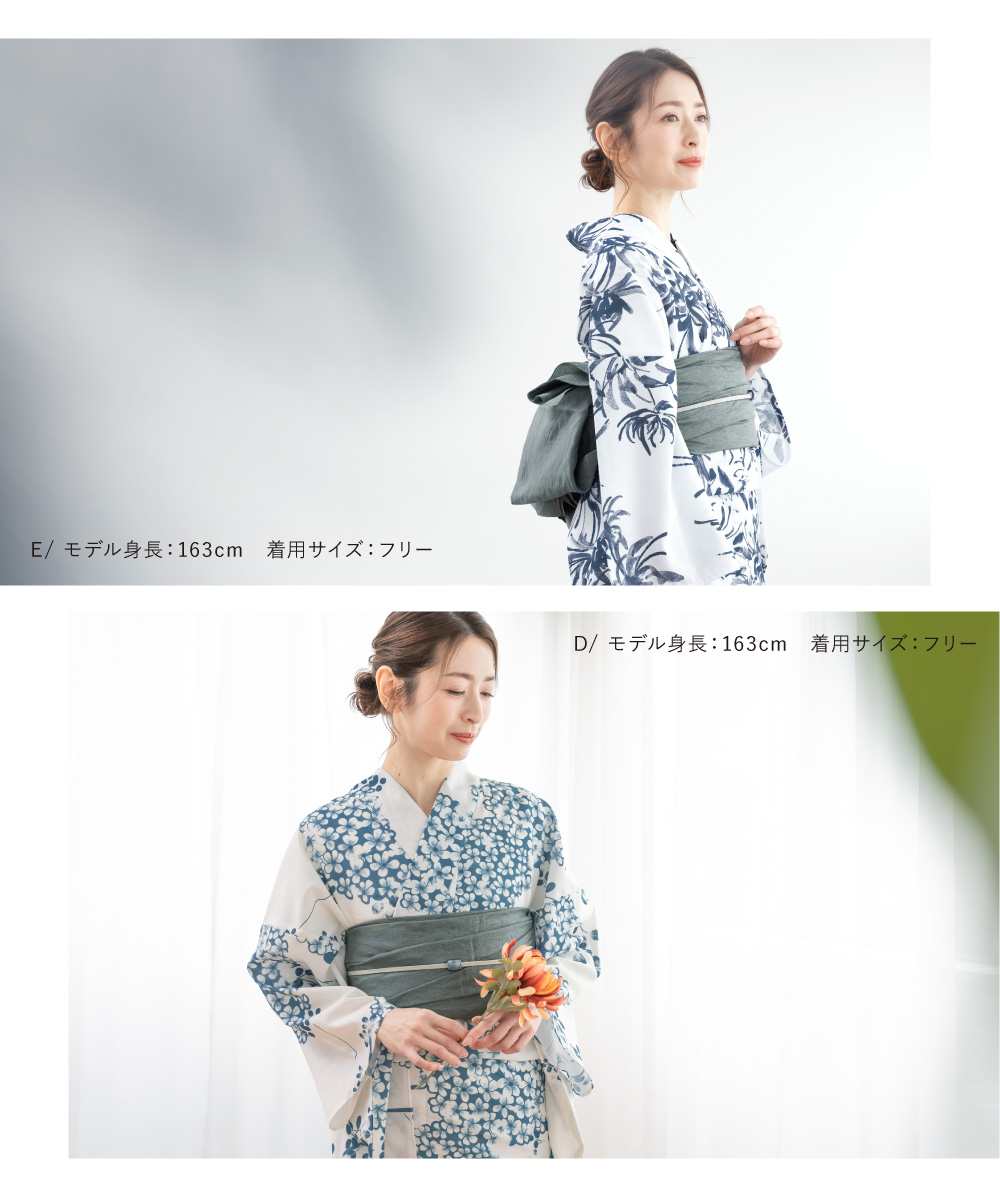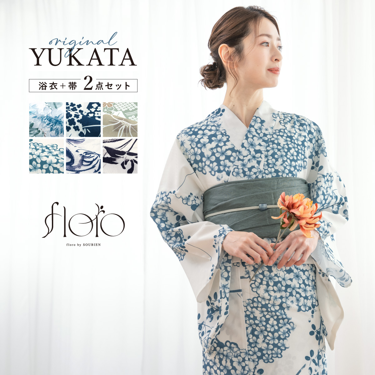 浴衣 セット レディース 浴衣セット 兵児帯 floro 簡単 涼しい コーディネート済み 青 白 紺 緑 灰 花 紫陽花 S フリー 2025新作