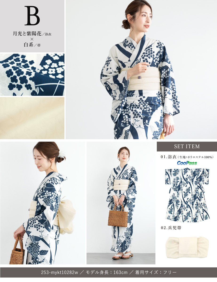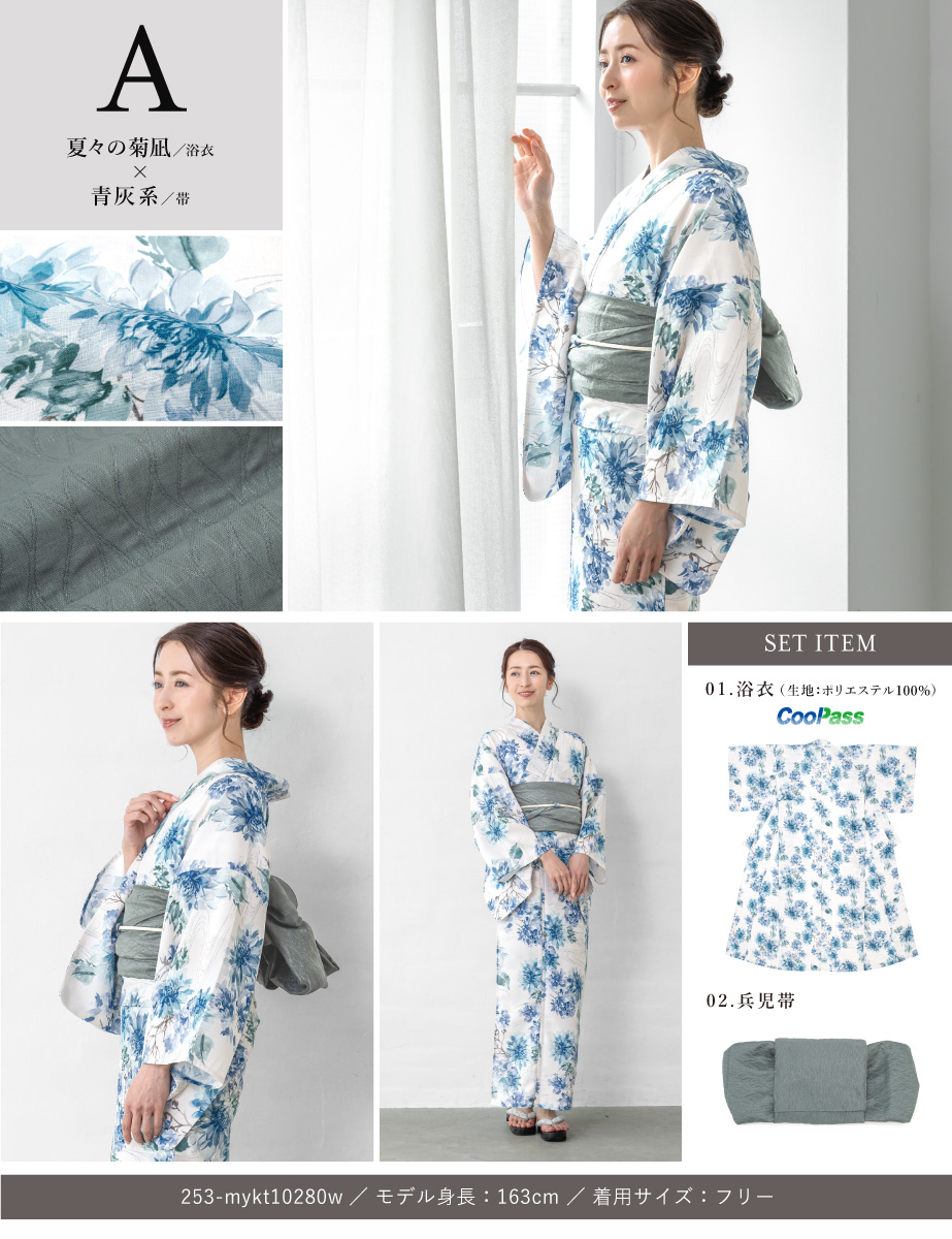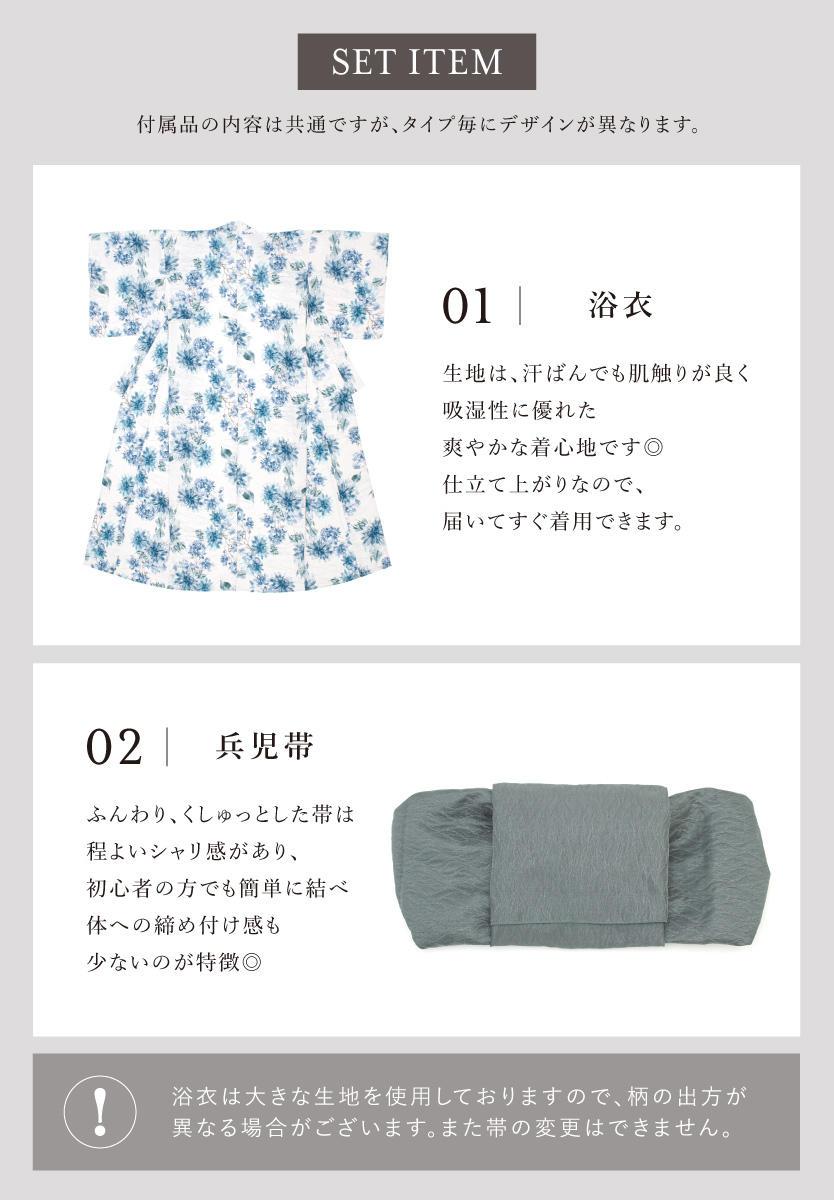 ※こちらの商品は、浴衣・帯の2点セットです。セット内容の一部変更や、それに伴う値引きは承っておりません。