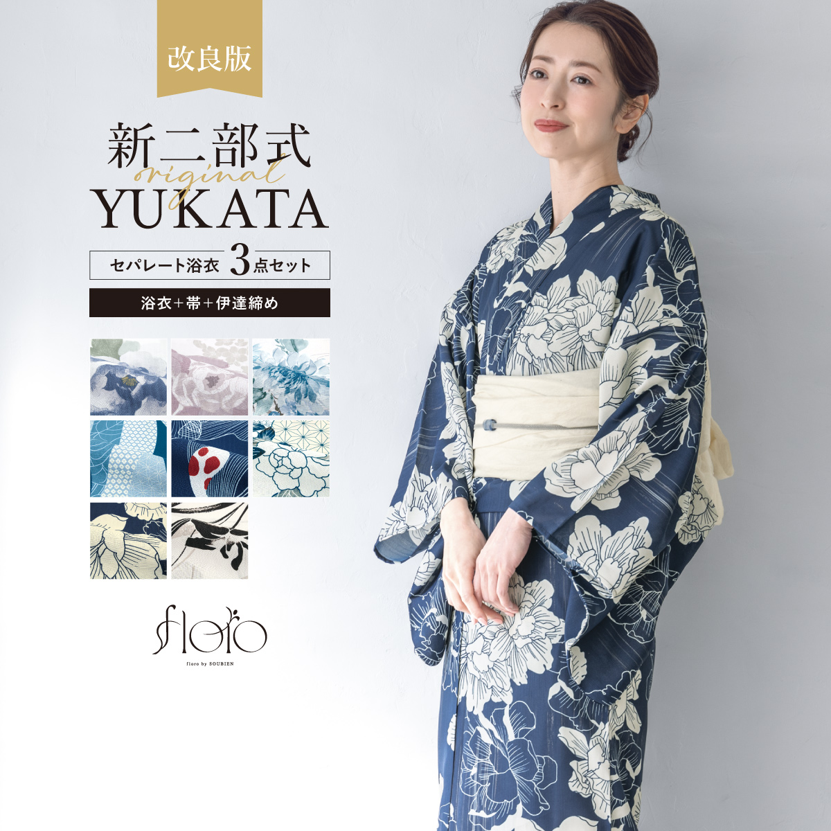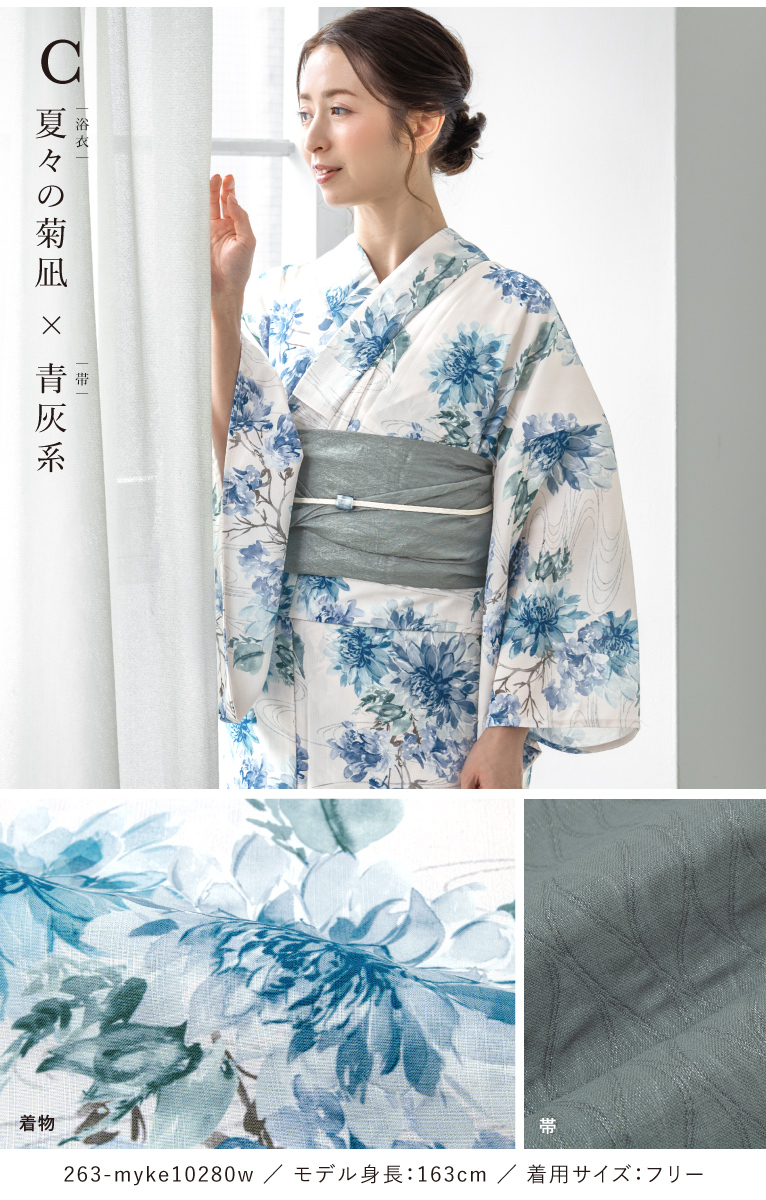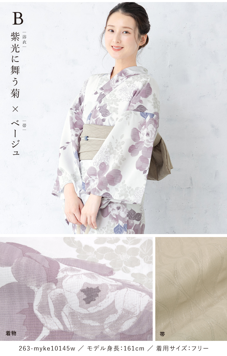 【予約】浴衣セット セパレート 二部式 レディース 3点セット 2026 浴衣 兵児帯 伊達締め セット 白 黒 紺 青 紫 着付け 簡単 大人浴衣 フリー floro 創美苑