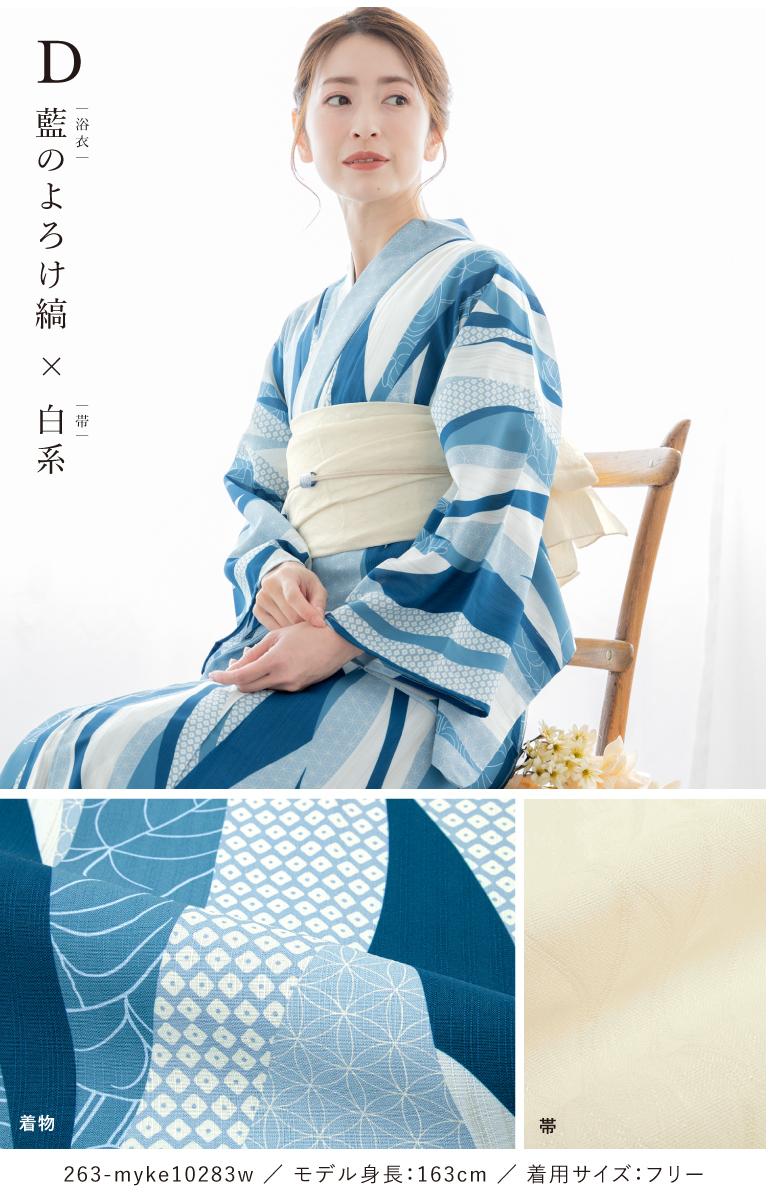 二部式浴衣(上衣+下衣+おはしょり布)・帯・伊達締め