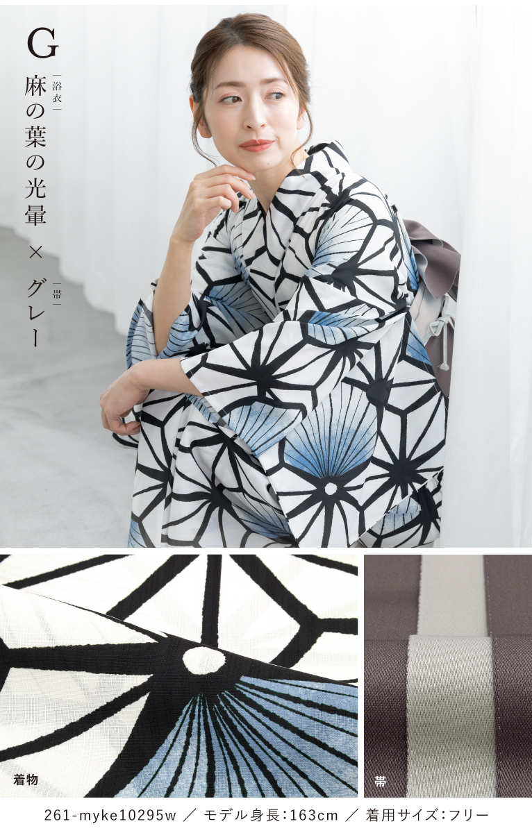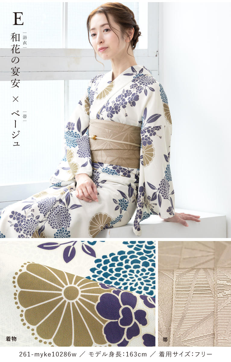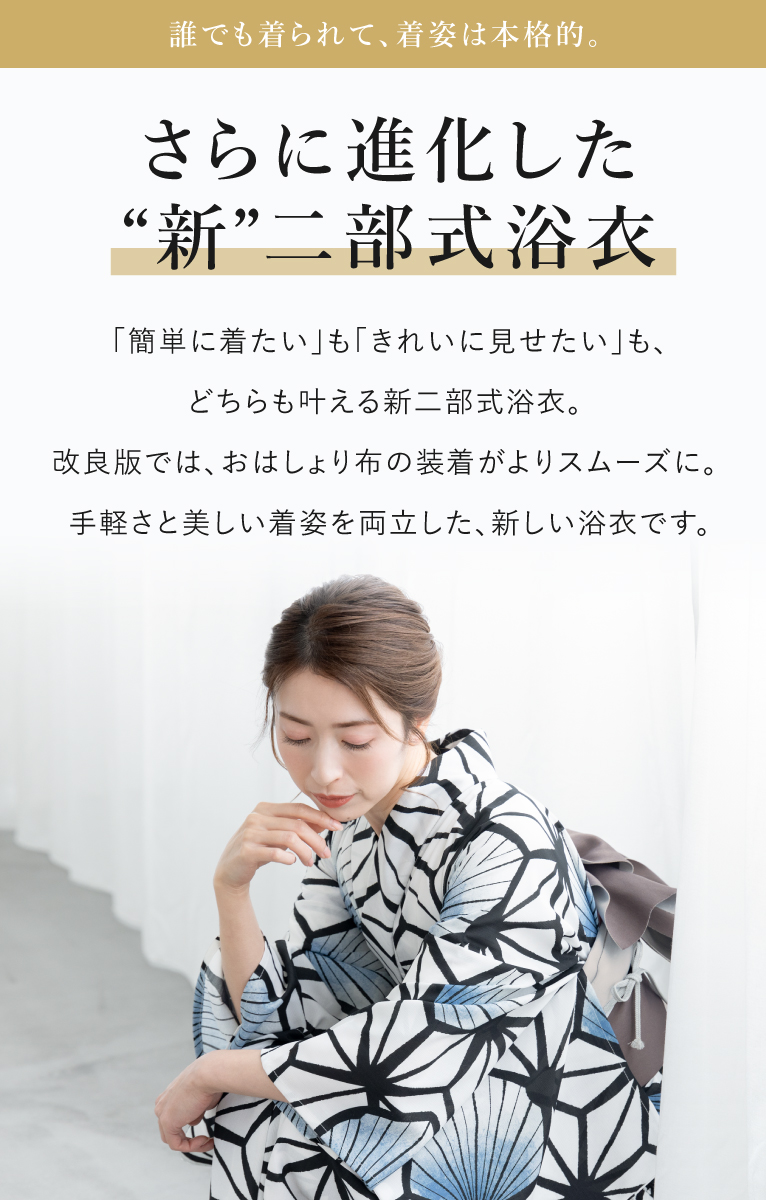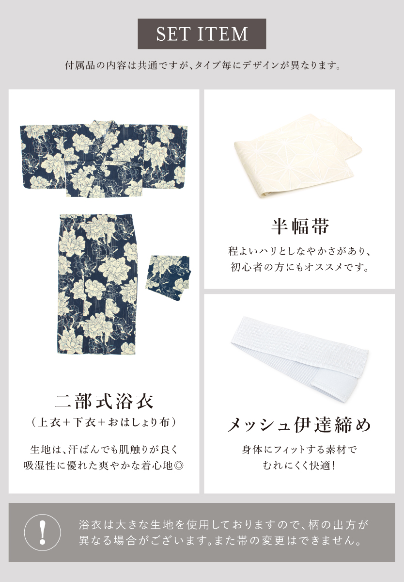 二部式浴衣(上衣+下衣+おはしょり布)・帯・伊達締め