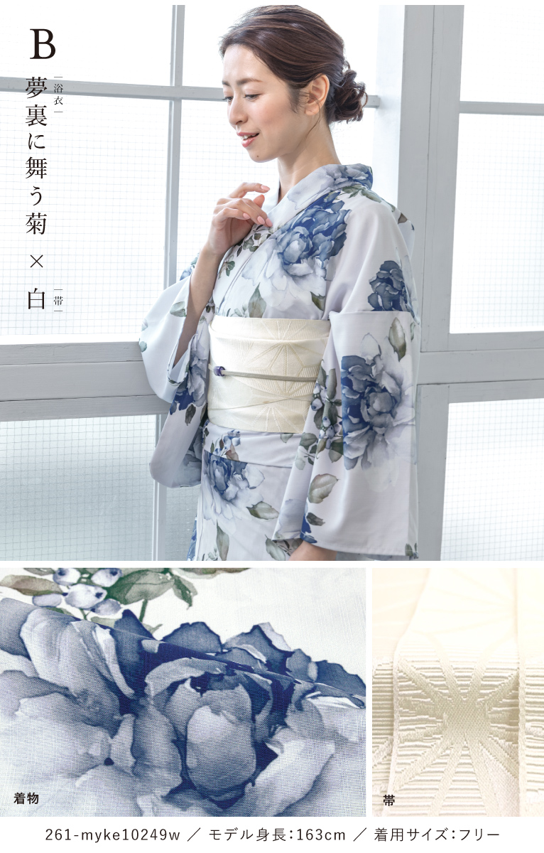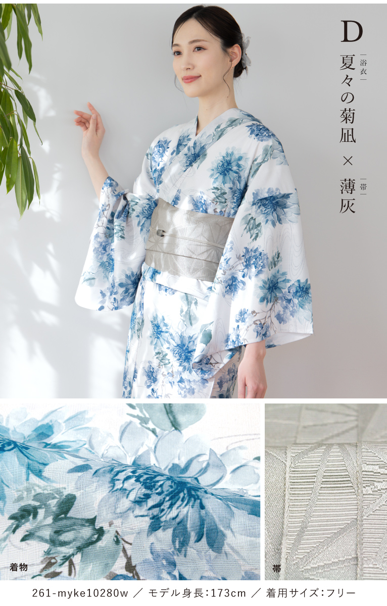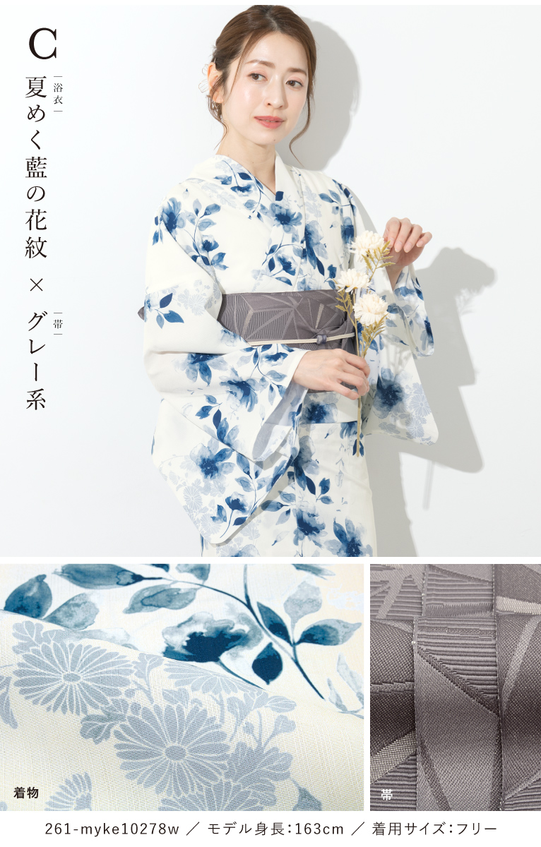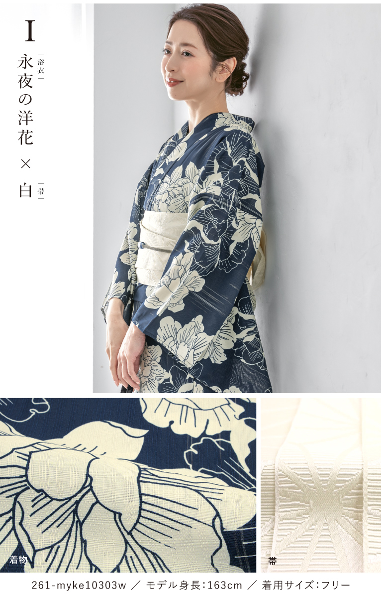 【予約】浴衣セット セパレート 二部式 レディース 3点セット 2026 浴衣 半幅帯 伊達締め セット 白 黒 青 花柄 着付け 簡単 大人浴衣 フリー floro 創美苑