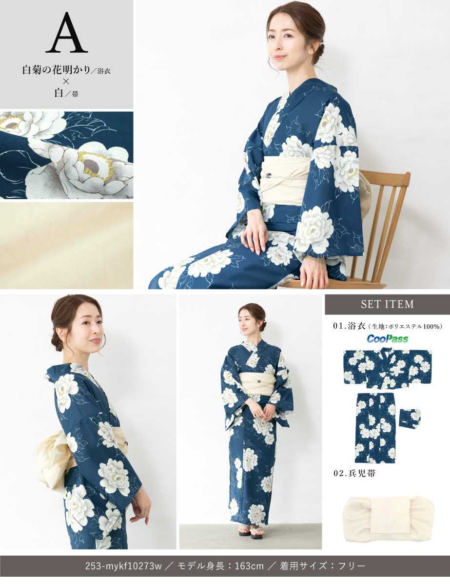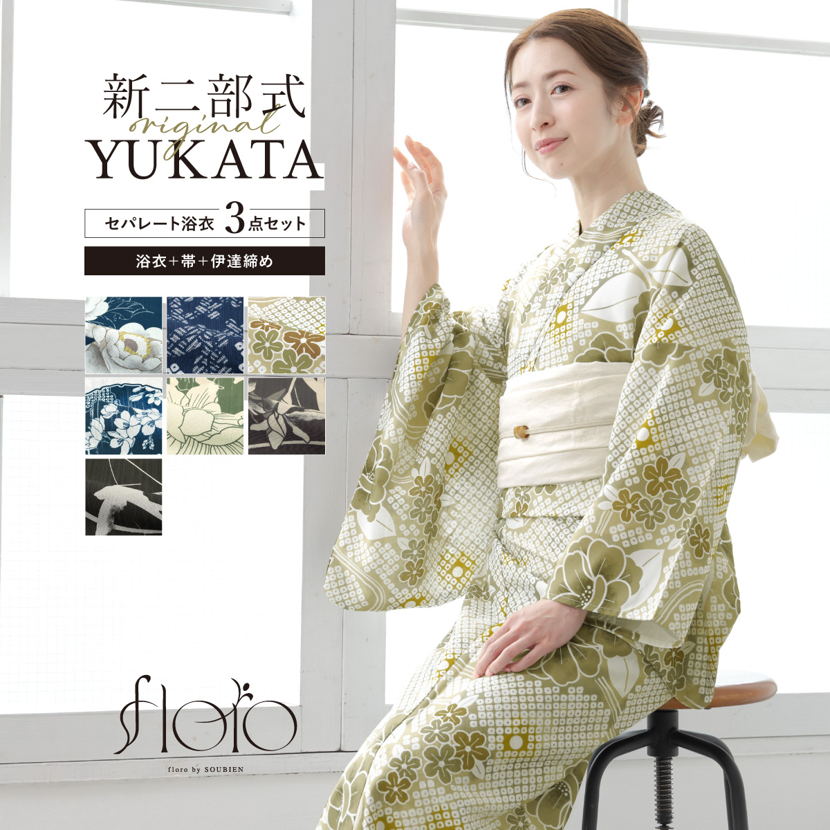 浴衣 レディース セパレート浴衣 二部式浴衣 浴衣セット 大人 F 兵児帯 floro 夏 3点 2way 簡単 花柄 レディース浴衣 女性 ゆかた ユカタ yukata モダン 創美苑