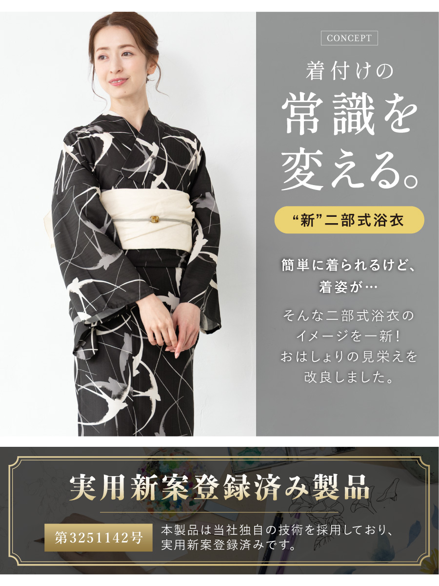 ※製造の都合上、浴衣とおはしょり布の色味が若干異なる場合があります。予めご了承ください。